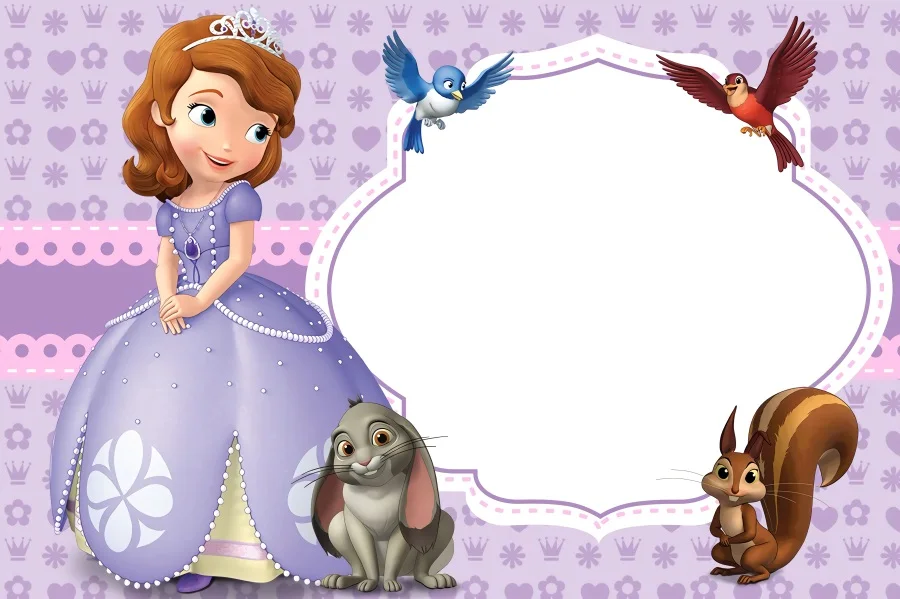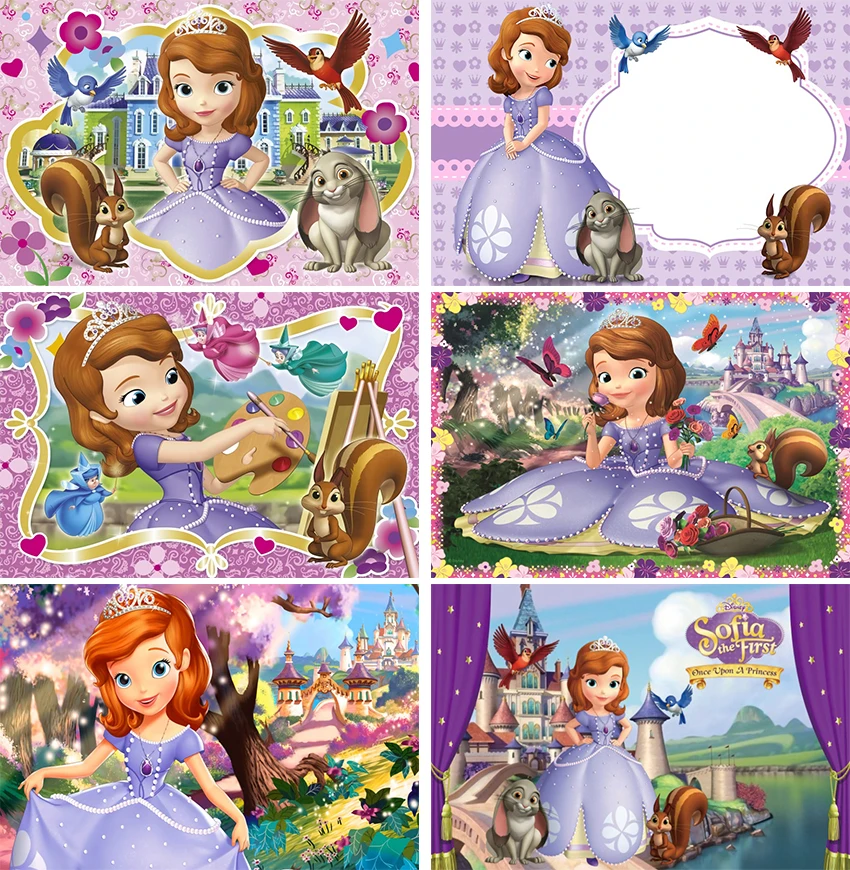 Маленькая принцесса в фиолетовом платье мультяшный фон кролик София замок девушка день рождения украшение торт фото фон плакат