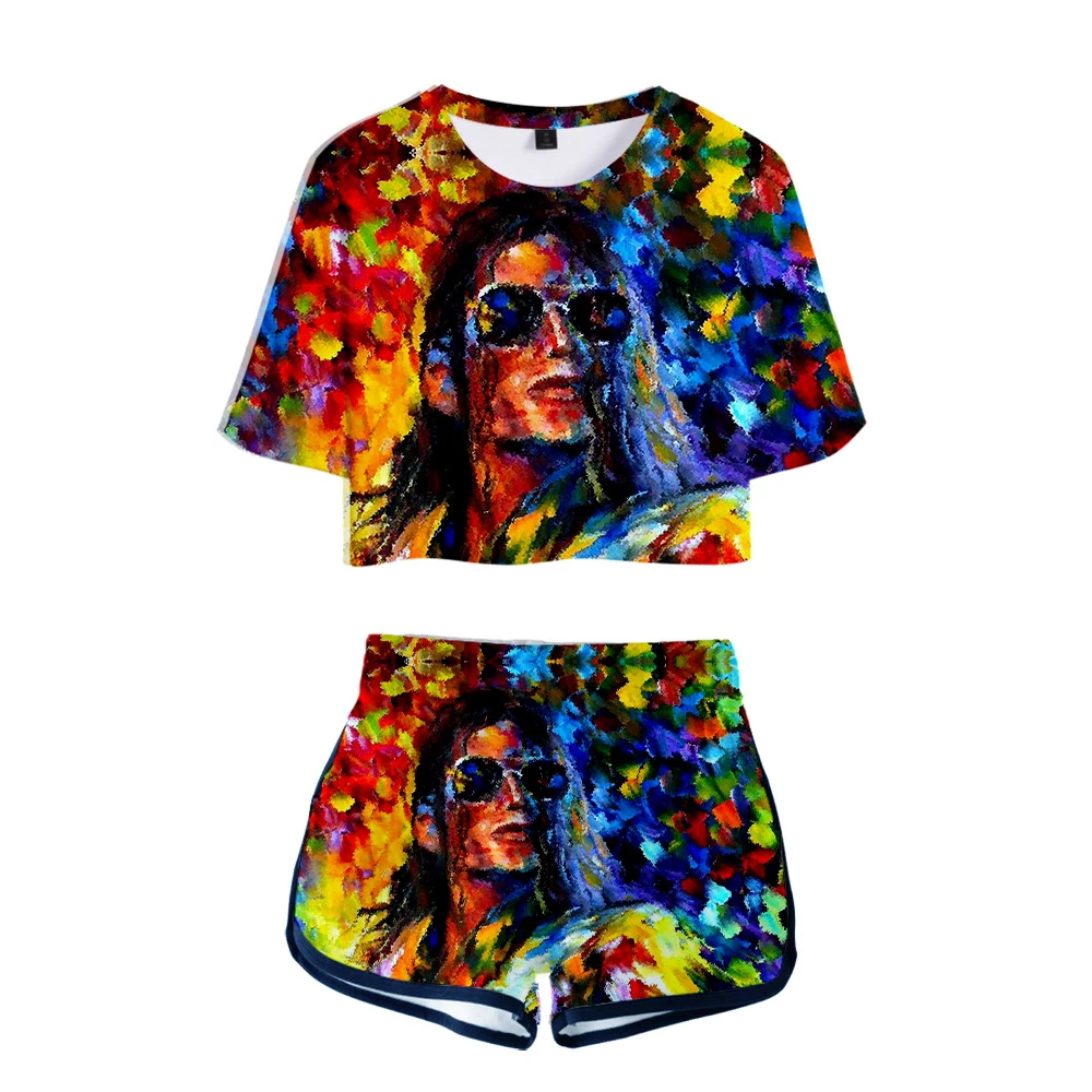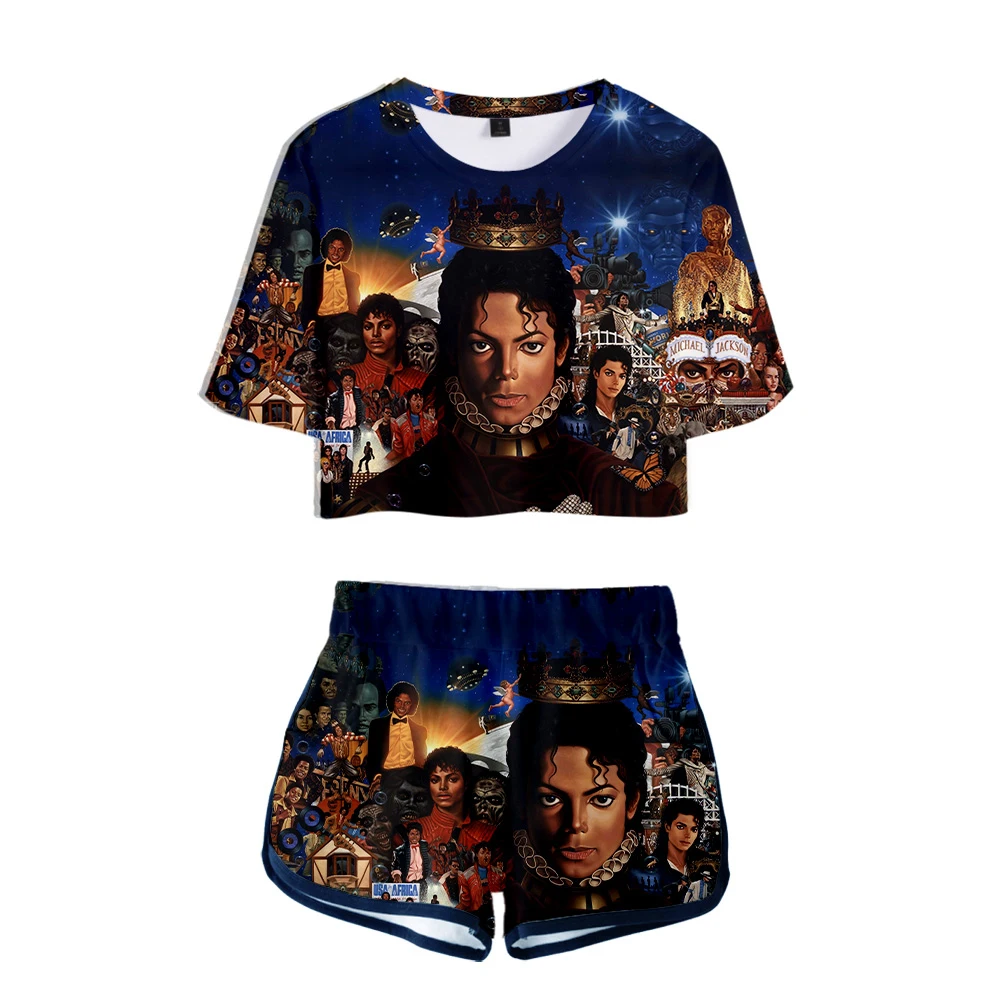 Женский творческий комплект Майкла Джексона из двух предметов, модная футболка и шорты в стиле Харадзюку для девушек, личная одежда Y2K