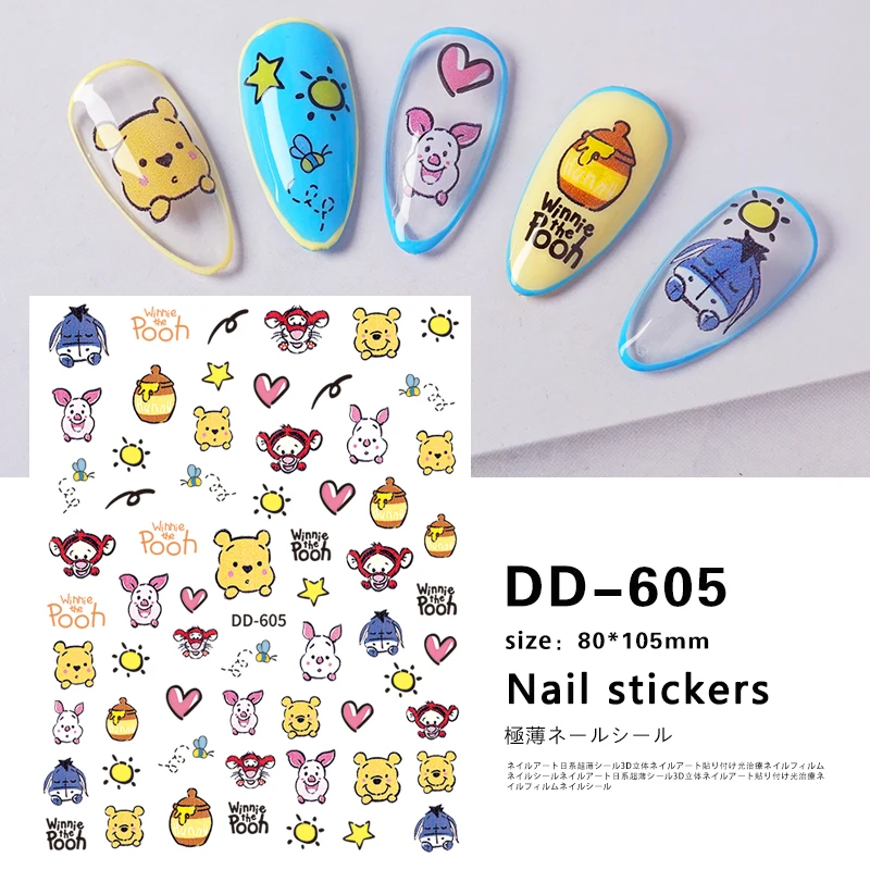 Очень милые наклейки Винни-Пуха отличного качества, идеальные размеры для всех ногтей