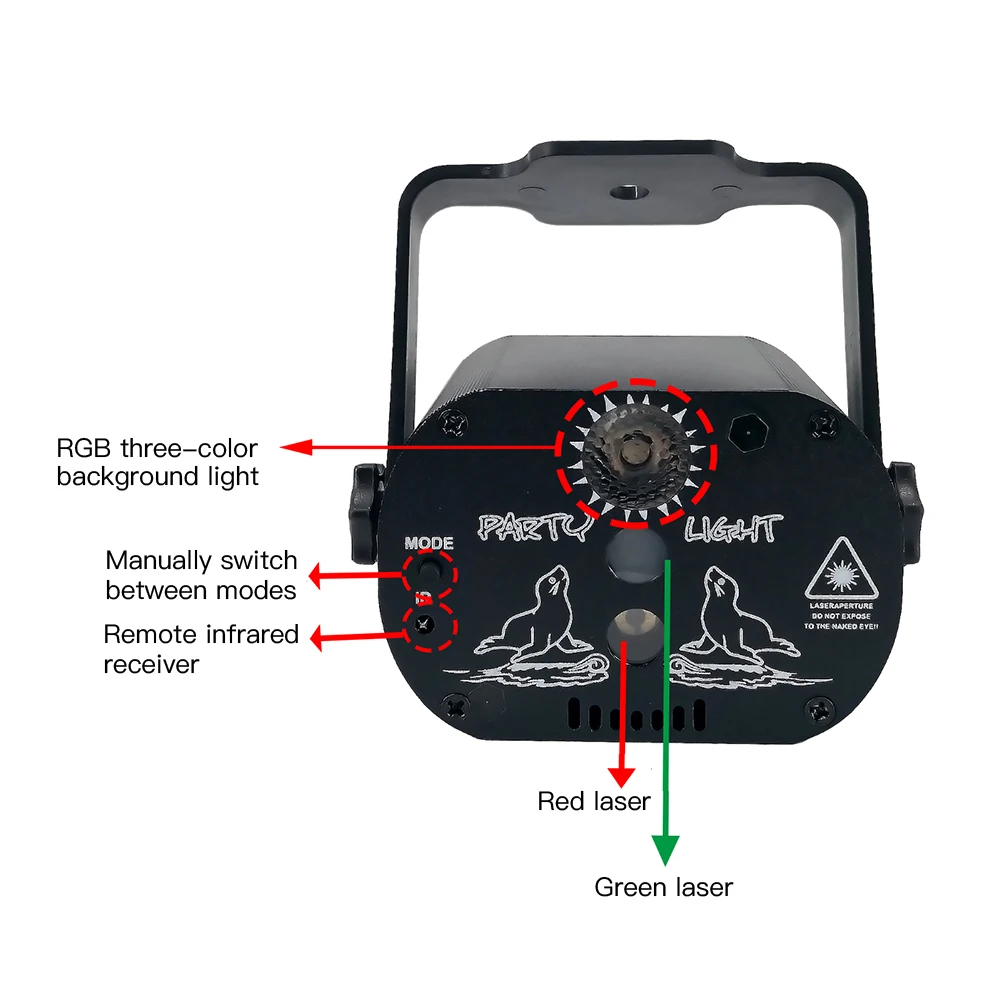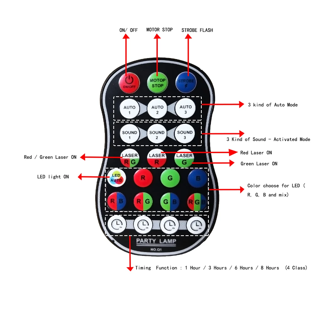 3. Звук активный, автоматический режим и пульт дистанционного управления, красный и зеленый, автоматически воспроизводит или воспроизводит музыкальный ритм.