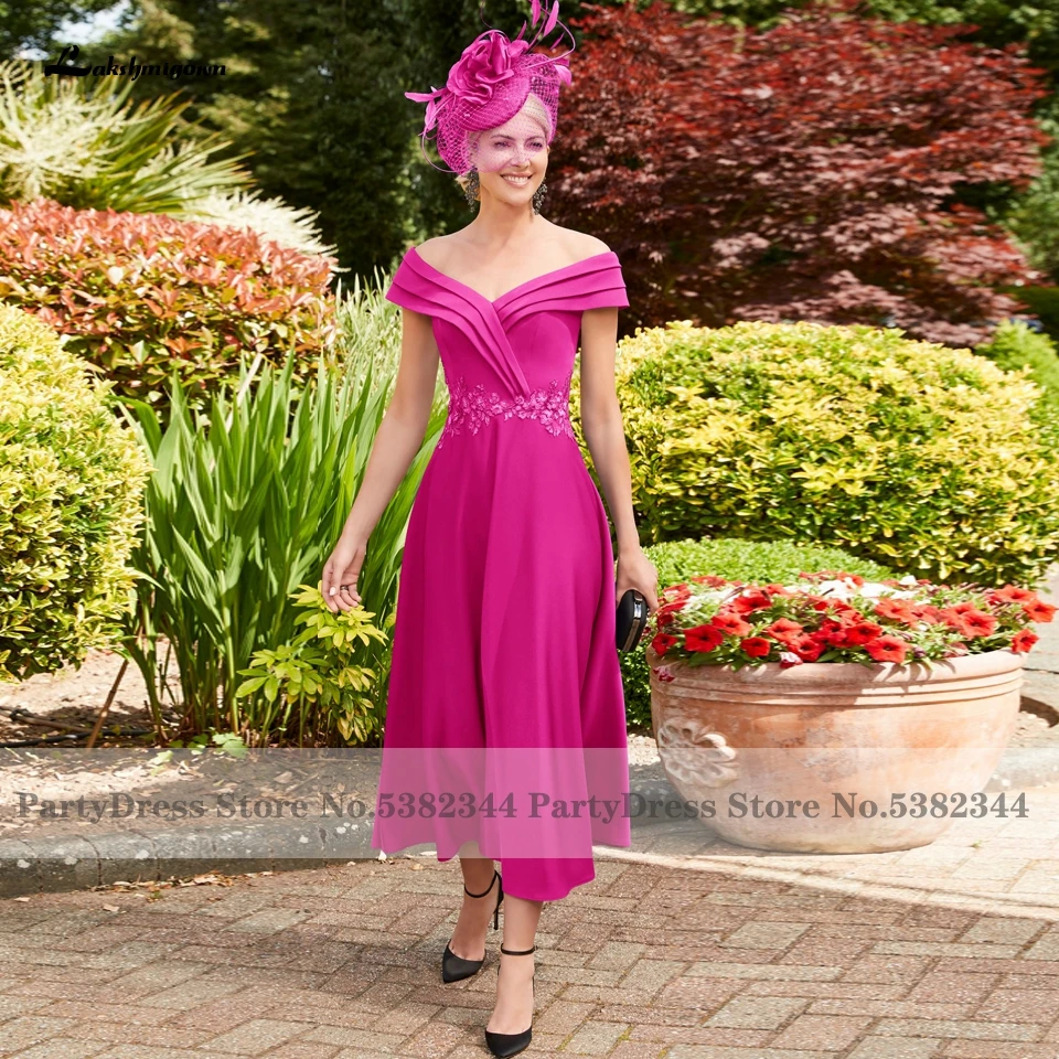 Lakshmigown, ярко-розовое платье для матери жениха, длиной ниже колена, 2022, формальное платье для гостей на свадьбу, вечеринку, платье с открытыми плечами, Vestido de Madrinha