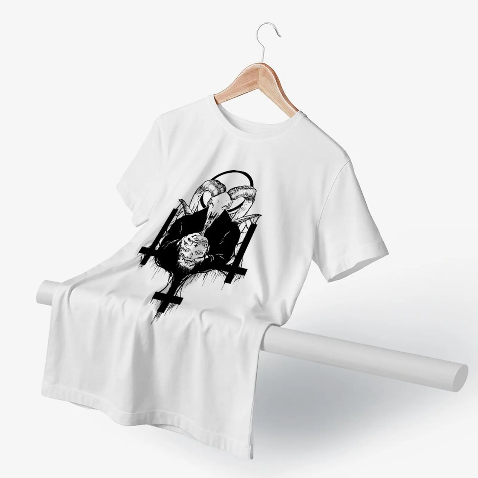Пляжная футболка BAPHOMET с принтом сатаны и демона, Мужская футболка оверсайз из 100 хлопка