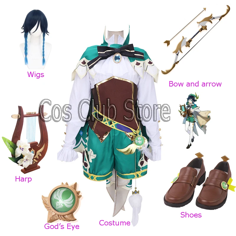 Парики для косплея Genshin Impact Venti, реквизит для косплея, Арпа, Запад, ветер, охота, лук и стрела, карнавал, Хэллоуин