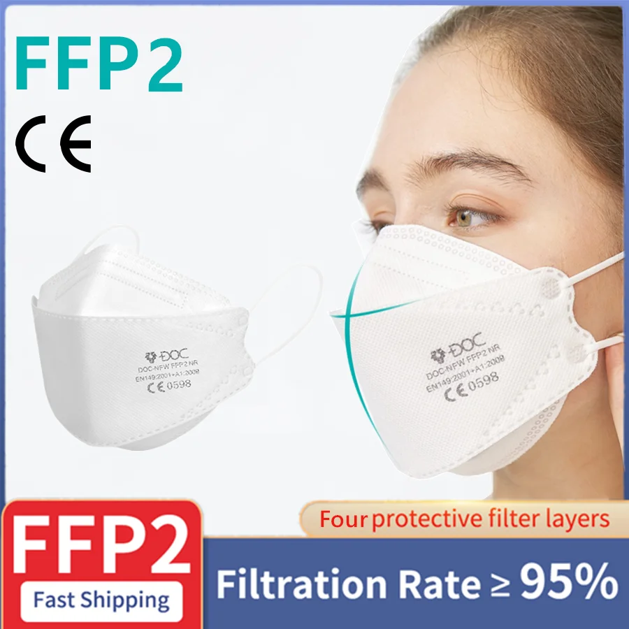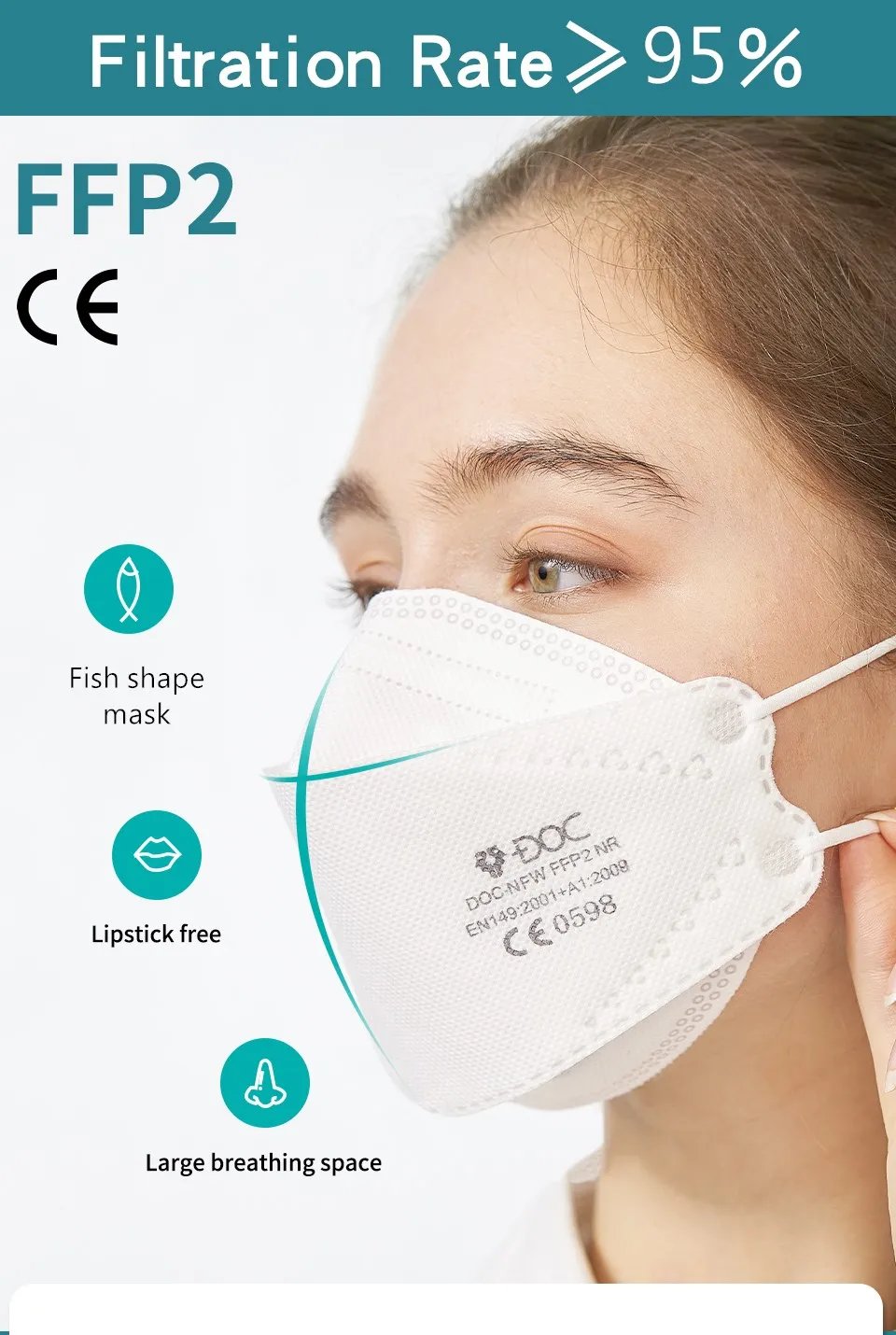 10-100 шт. FFP2 маски для рыбы повязка на голову в стиле ушной петли одобренный CE fpp2 для взрослых индивидуальная упаковка в наличии Испания Франция Быстрая доставка ЕС