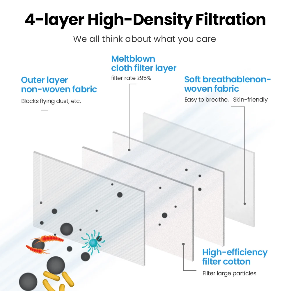 Elough 4-слойная многоразовая маска KN95, маска для рыбы 10-100 шт....