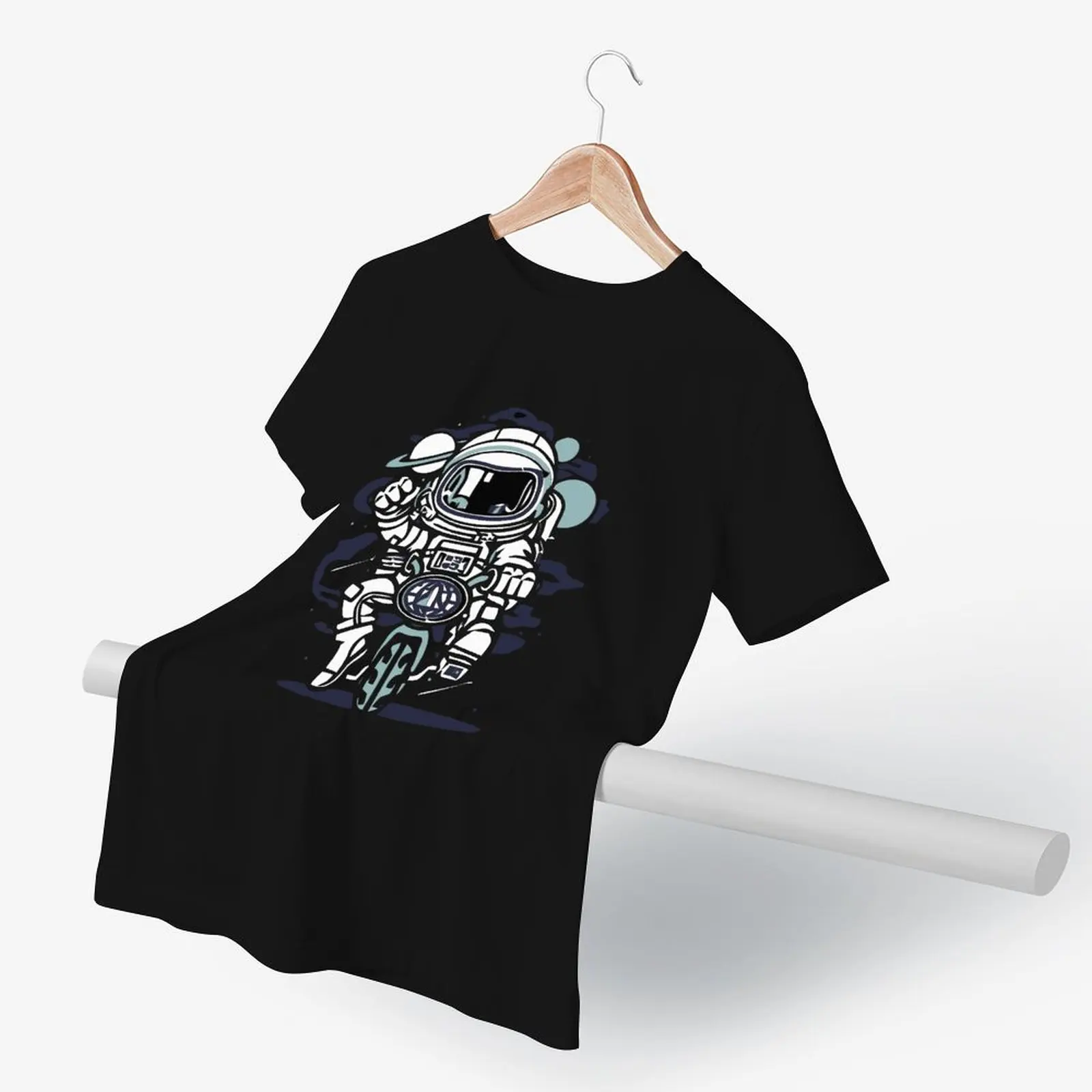 Футболка из хлопка с принтом космонавта, космического велосипеда