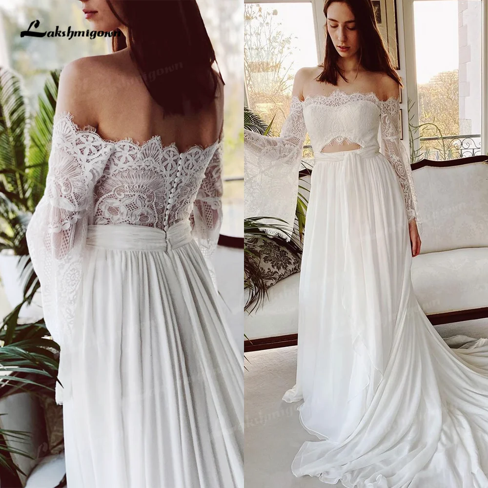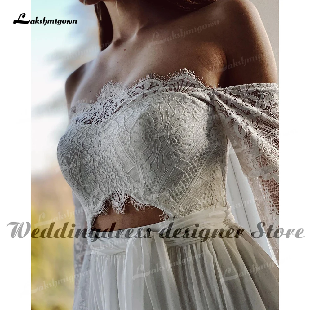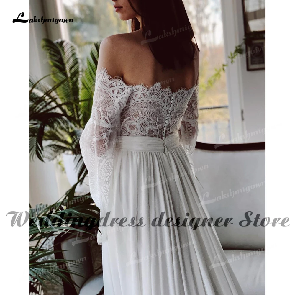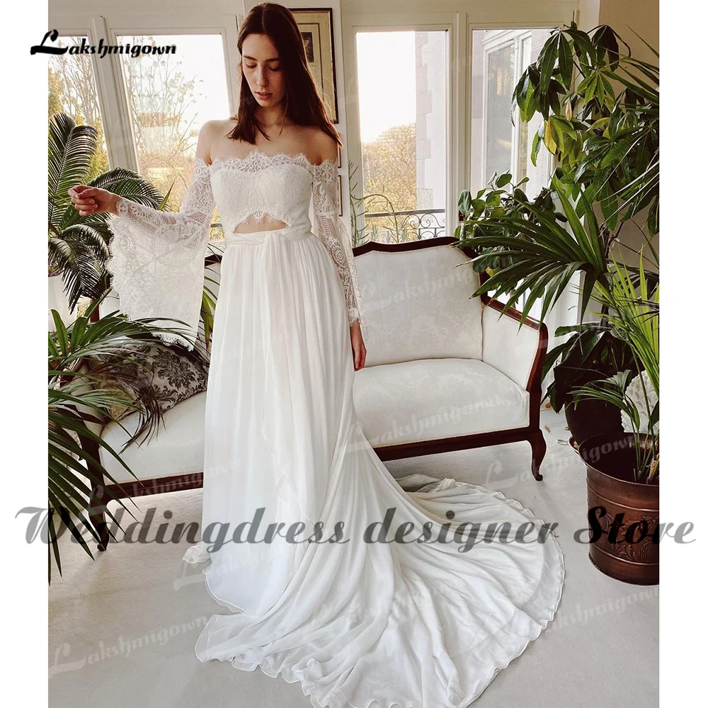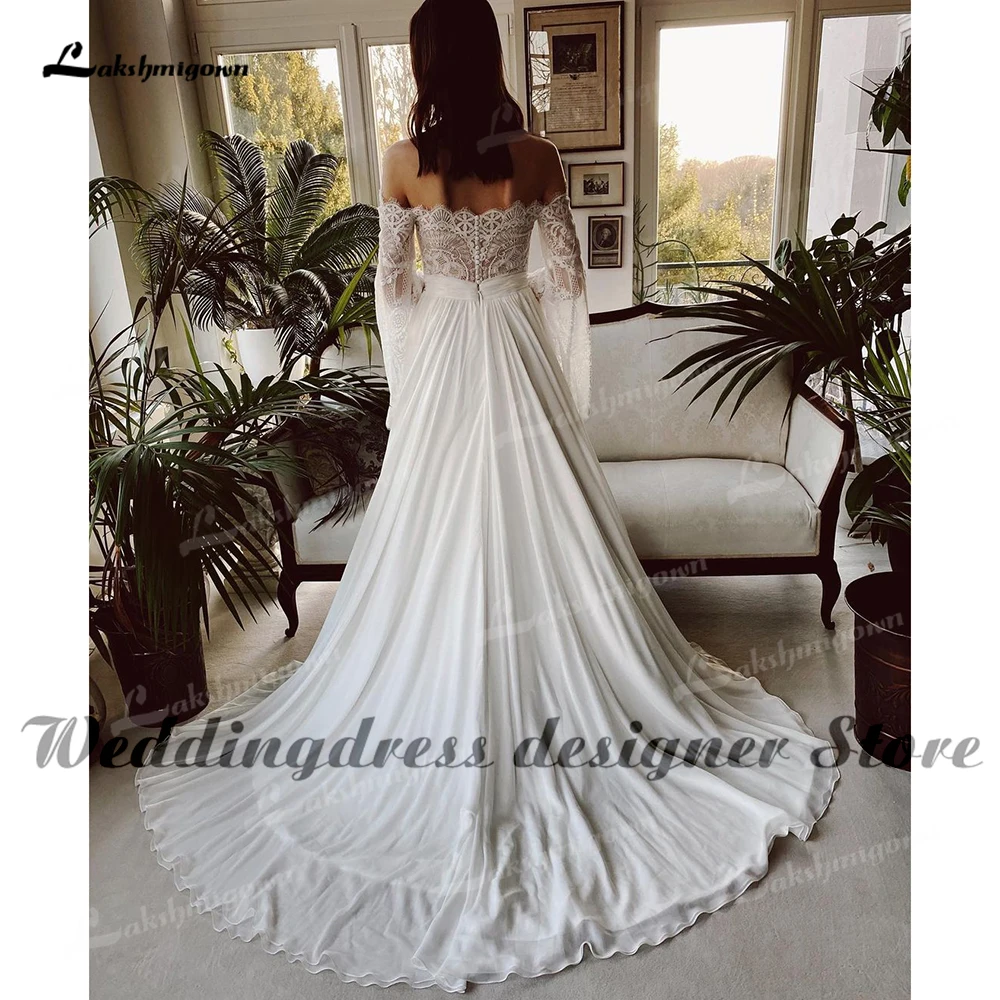 Шифоновые свадебные платья в богемном стиле, кружевное свадебное платье с открытыми плечами и длинными рукавами для невесты, 2022, robz de mariee