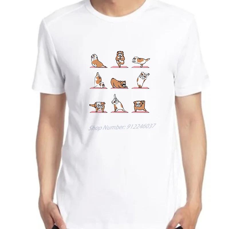 Футболка с рисунком английского бульдога и йоги, футболки с коротким рукавом, топы, уличная одежда, летняя футболка в стиле Харадзюку для мужчин, одежда