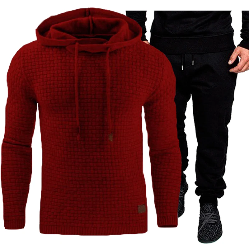 Костюм спортивный Мужской Хлопковый в клетку, толстовка с капюшоном и длинными рукавами, уличная одежда, костюм для бега