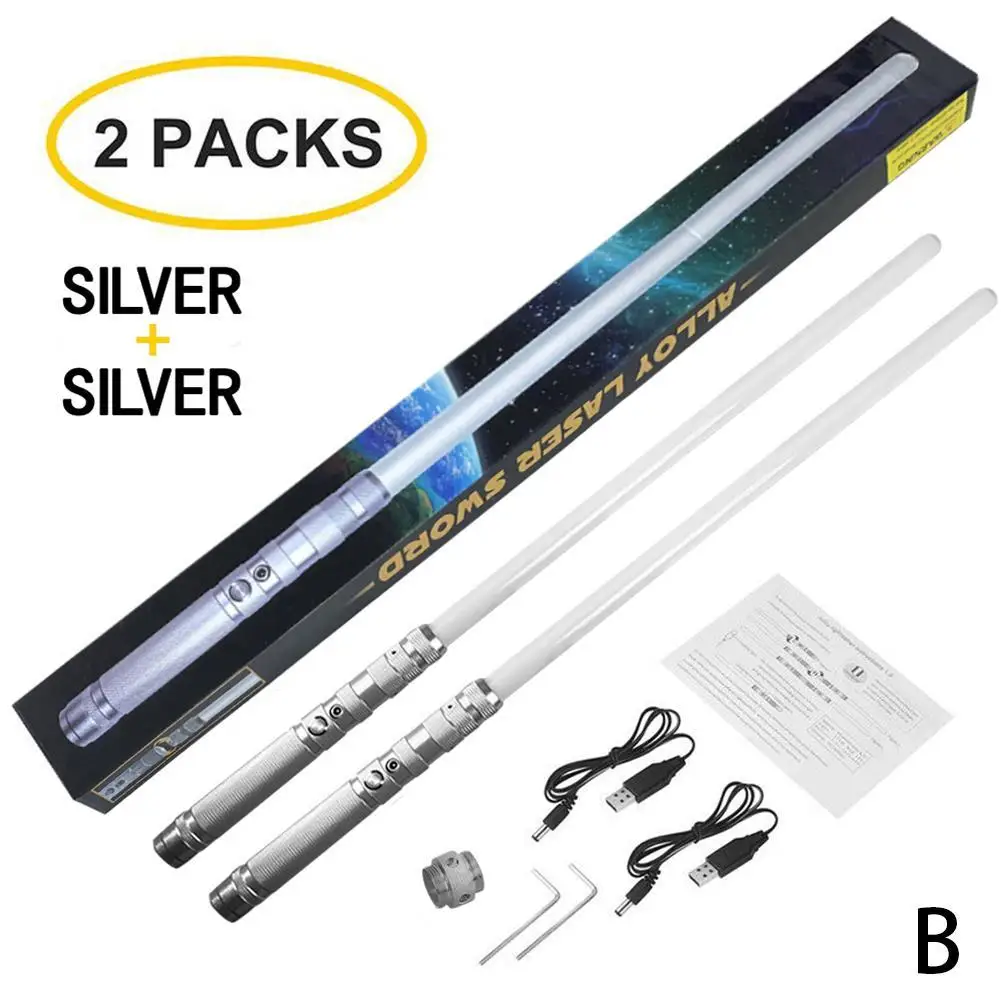 Характеристика:100% новое качествоВысококачественные металлические кнопки, высокопрочные взрывозащищенные лезвия, съемные лезвия (инструмент поддержки-полностью разбирается, удобнее), регулировка громкости, функция отключения звука, регулировка яркости, множество световых эффектов, функция памяти, высококачественный usb-кабель для зарядки, руководство и т. д.)Описание товараНагрузка: быстрая зарядка через USBВремя зарядки: 4-8 часовНапряжение при зарядке: 3,7 VАккумулятор: 1200 мАч, около 1 часаСветодиодный: 5 Вт RGB светодиодныйПосылка включает в себя:2 мечи2 лезвия2 x USB кабель для зарядки1 x конвертер