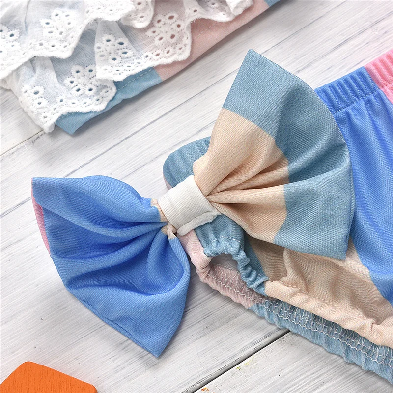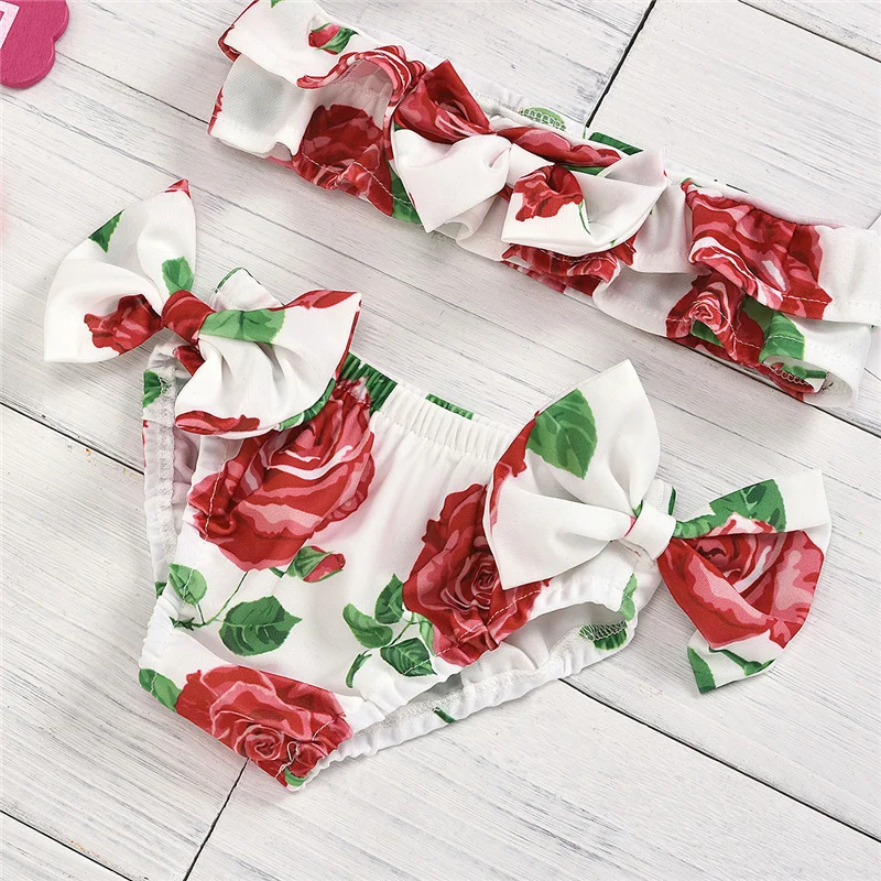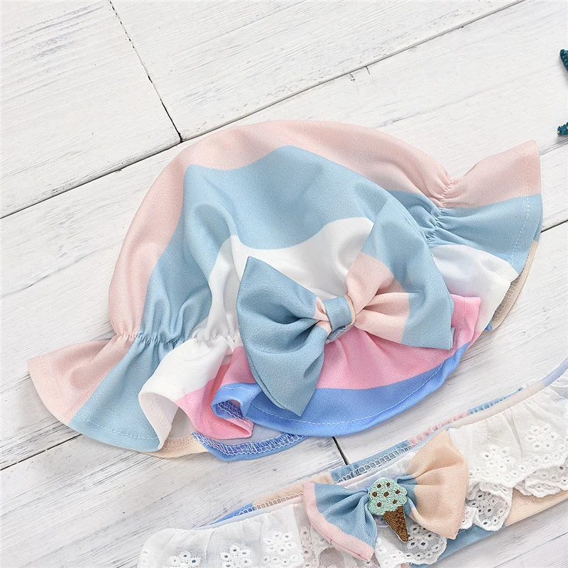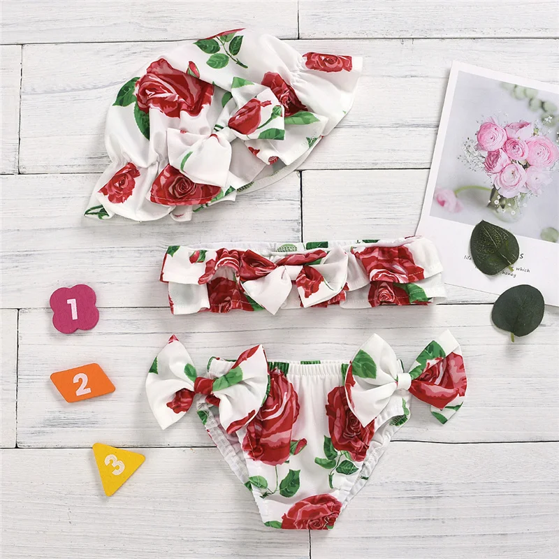 Модный Купальник для маленьких девочек, комплект бикини с принтом, бикини с бантом, шорты, эластичная шапка, 3 шт., летние новые купальники для малышей