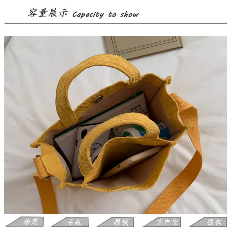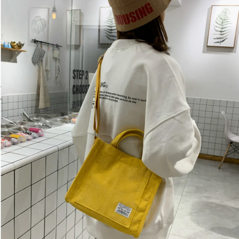 Вельветовая повседневная женская сумка-тоут через плечо, холщовые с...