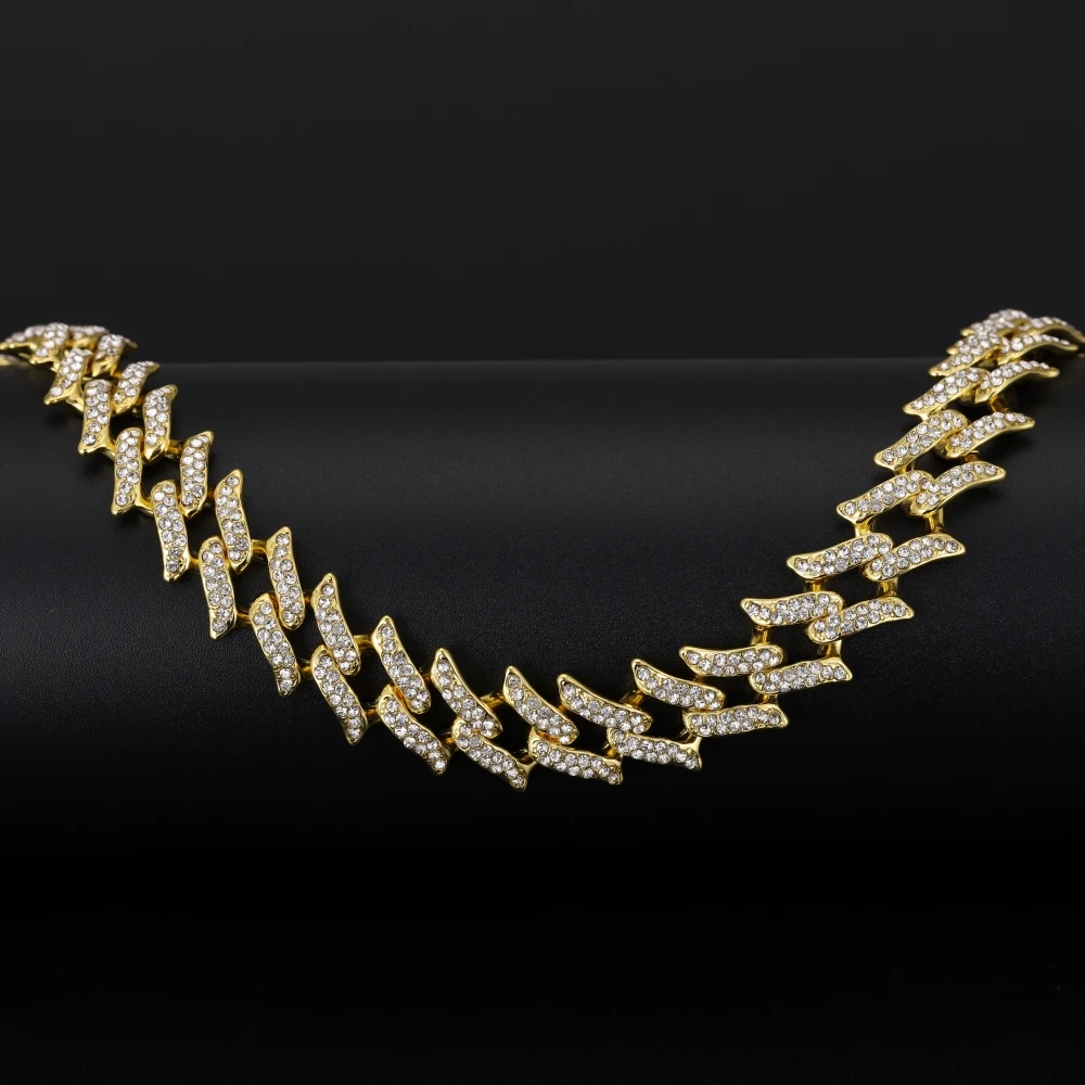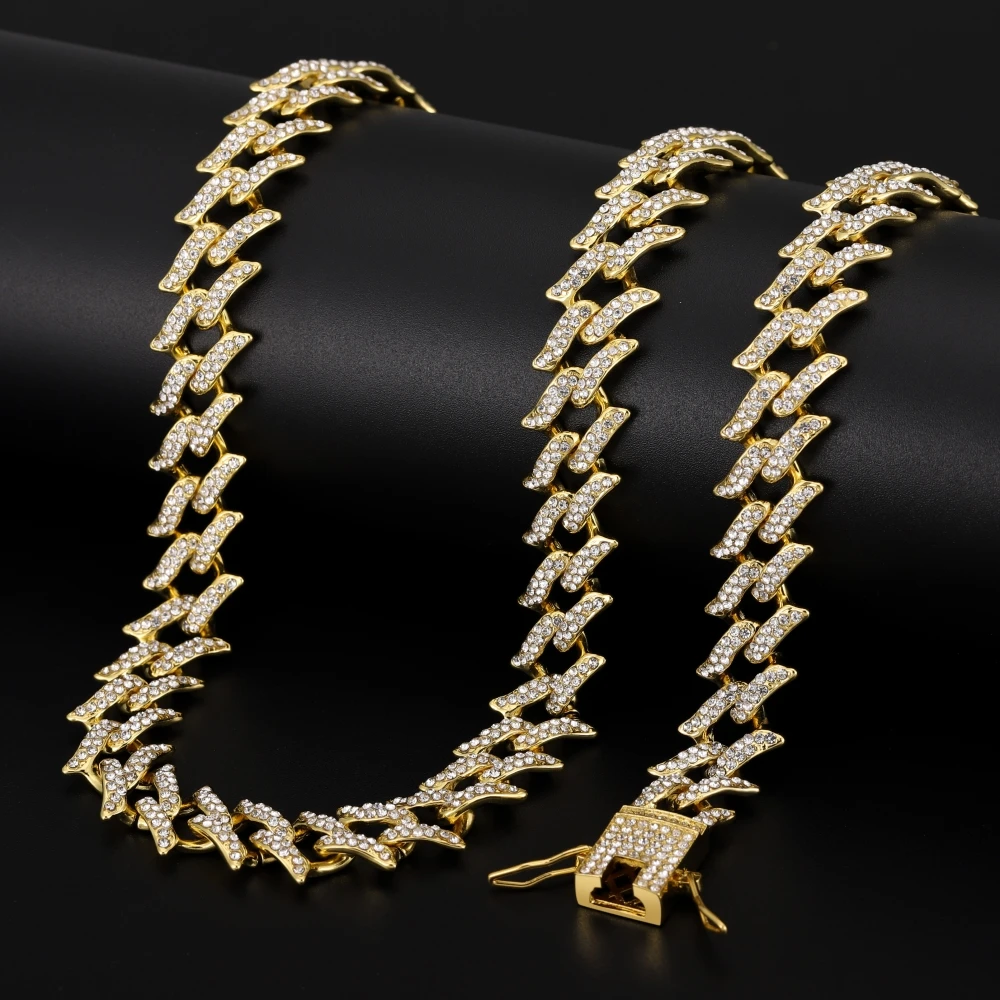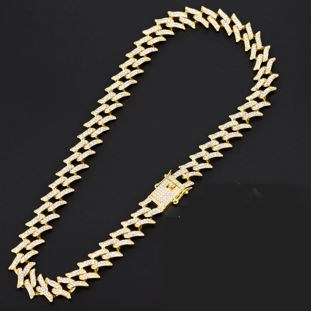 Цепочка мужская из кубинской цепи Майами, сверкающее ожерелье с застежкой в стиле хип-хоп, 15 мм, с кристаллами
