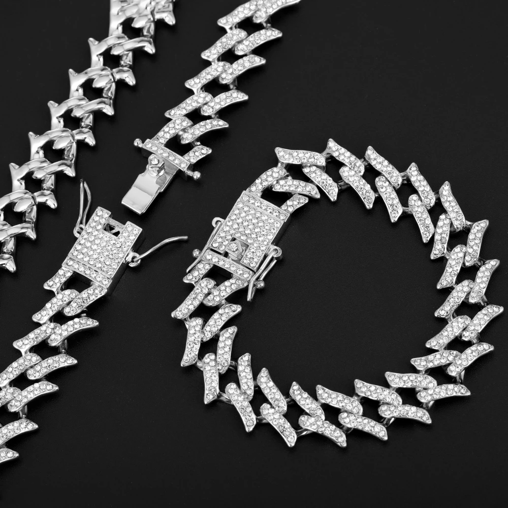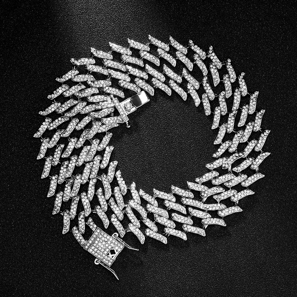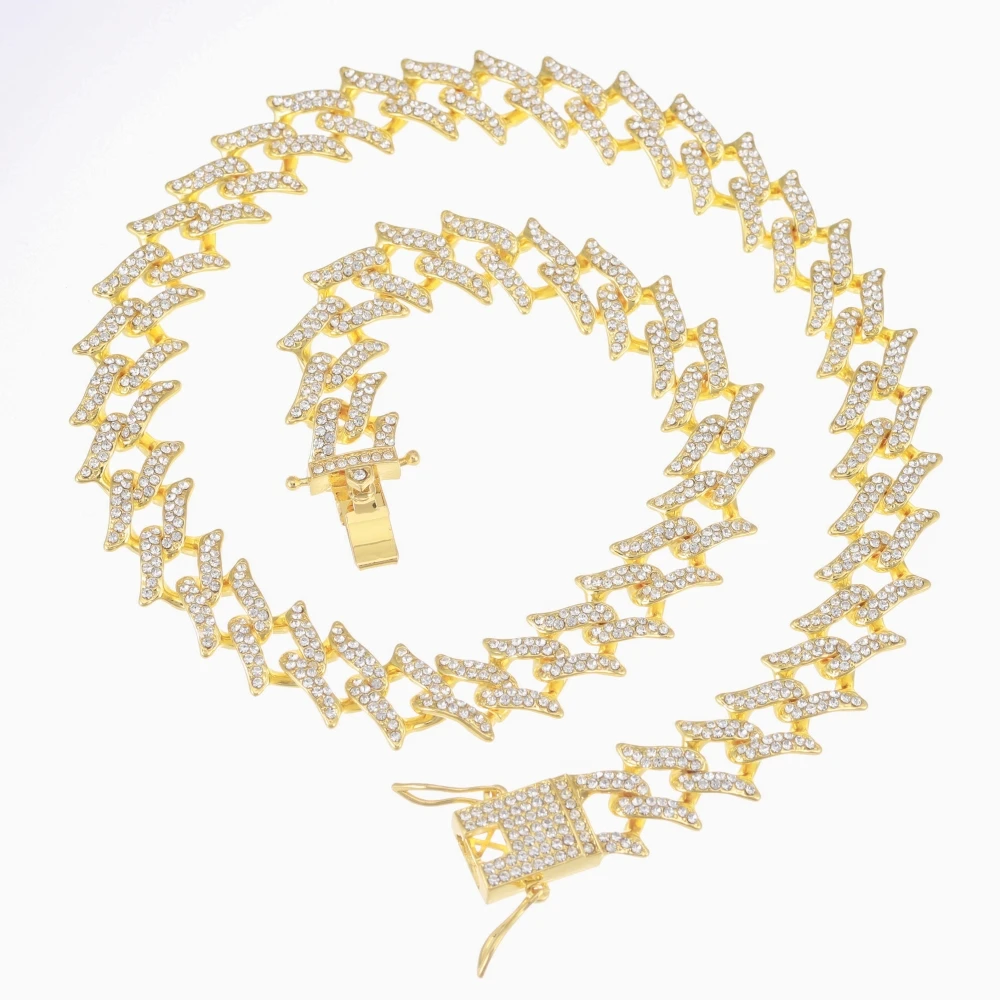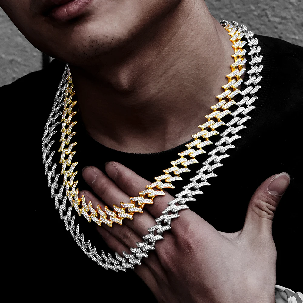 Цепочка мужская из кубинской цепи Майами, сверкающее ожерелье с застежкой в стиле хип-хоп, 15 мм, с кристаллами