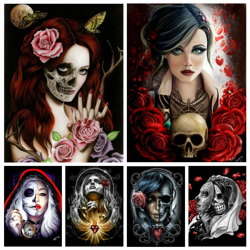 5d полная Алмазная картина с черепом, искусство и ангел стразы, моз...