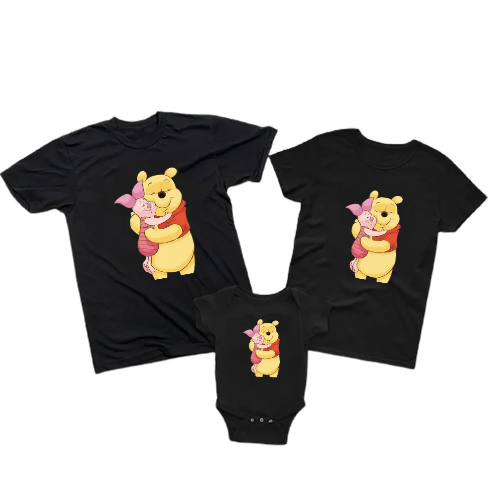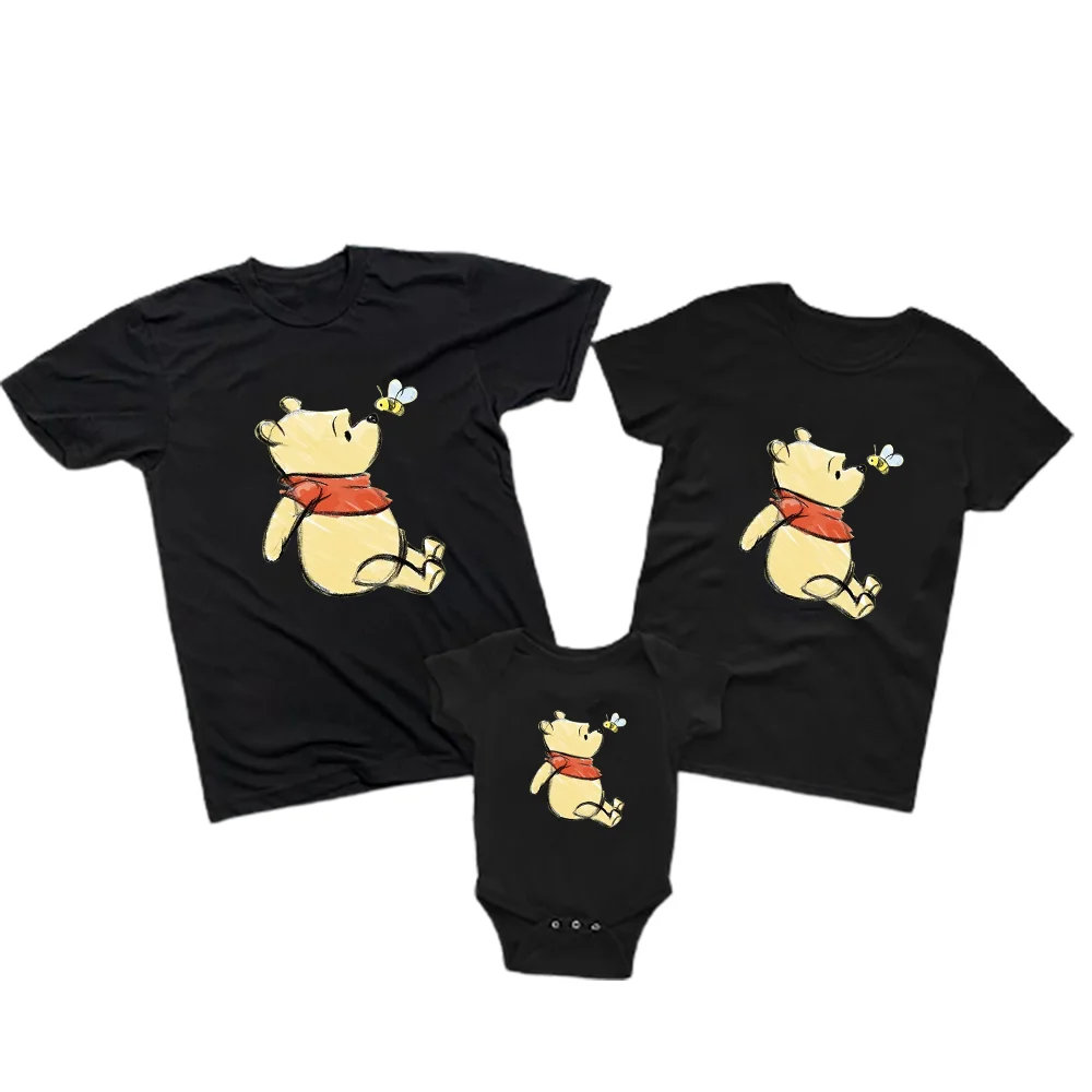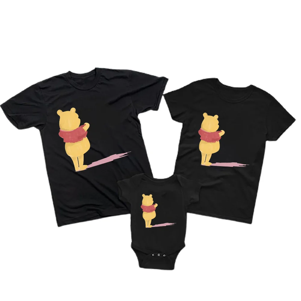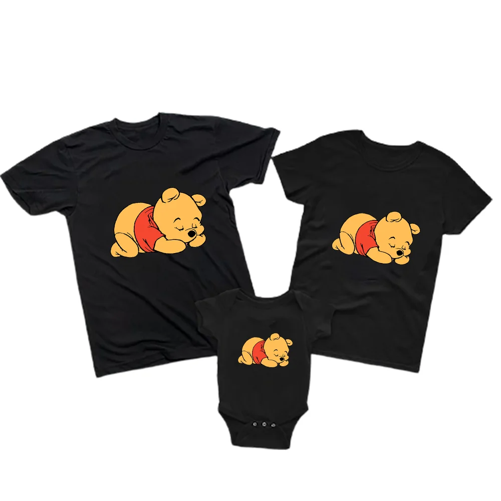 Футболка для мамы и ребенка, Летний Детский комбинезон с коротким рукавом, Винни-Пух, одинаковые Семейные футболки с принтом, футболка в стиле Харадзюку, Одежда для новорожденных