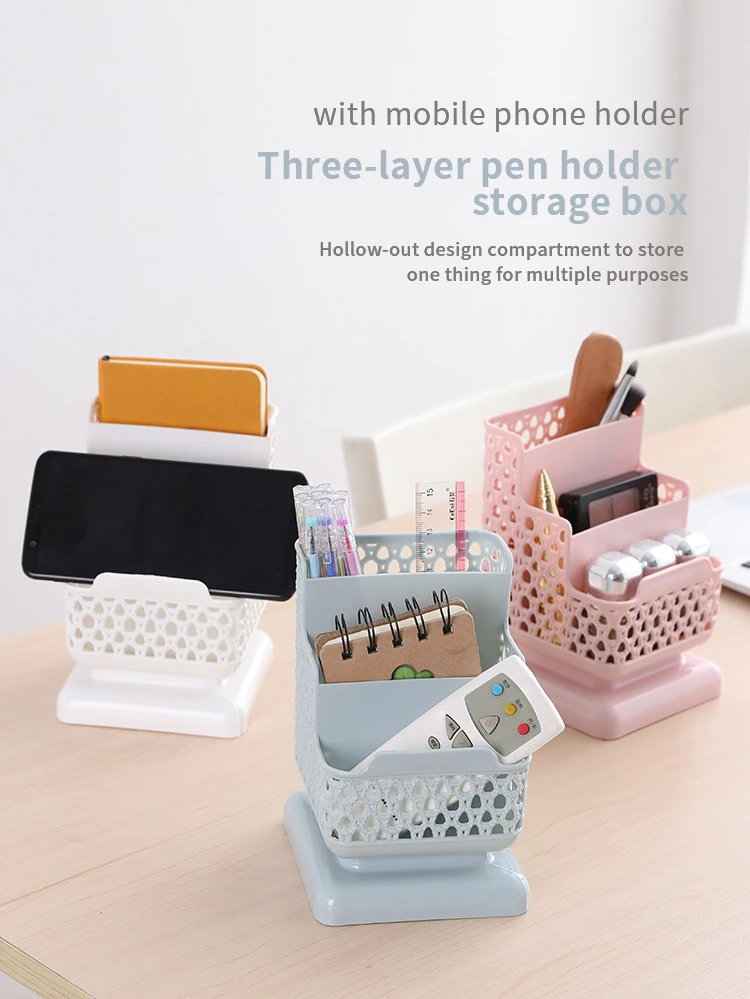 Многофункциональный Настольный ящик для хранения, полый карандаш для кистей и карандашей, держатель для ручек, пластиковый контейнер для кистей для макияжа, настольное хранилище для всякой всячины