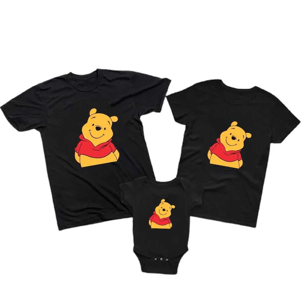 Футболка для маленьких мальчиков и девочек, комбинезон для малышей, летний хипстерский черный Универсальный Топ для взрослых, футболка, Одежда для новорожденных, Винни-пух