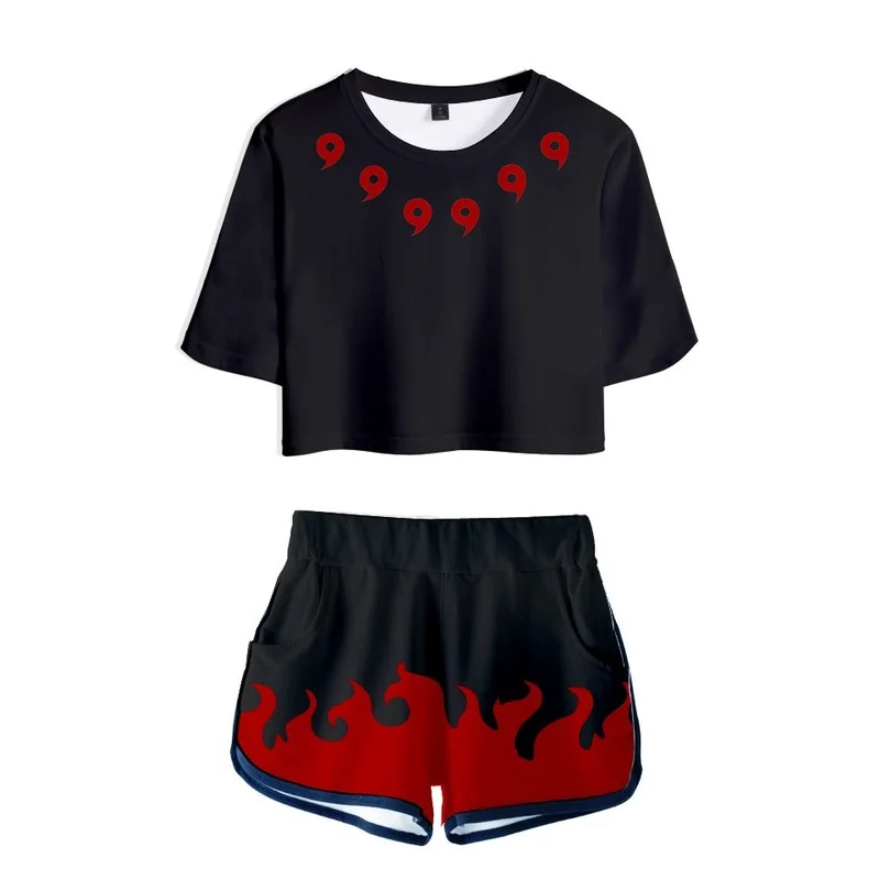 Женский комплект из двух предметов, короткий топ и шорты с открытым пупком