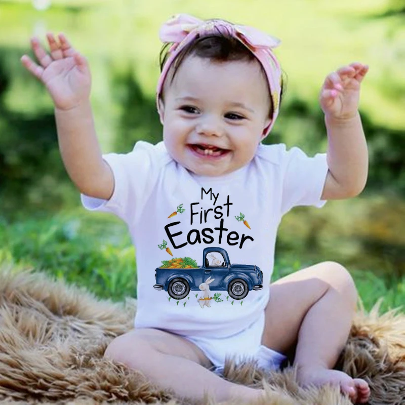 My First Easter Truck/Летний для новорожденных комбинезон с короткими рукавами для малышей, комбинезон с рисунком кролика для мальчиков и девочек, пасхальный наряд, одежда