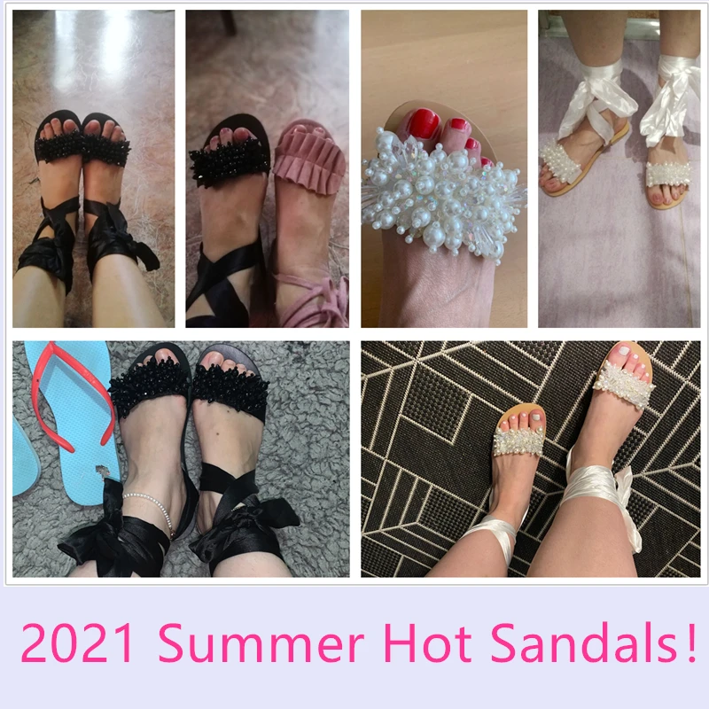 2021 г. Сандалии ручной работы женские сандалии на плоской подошве Специальная женская обувь с ремешком на щиколотке и бисером пляжные сандалии размера плюс 35-43