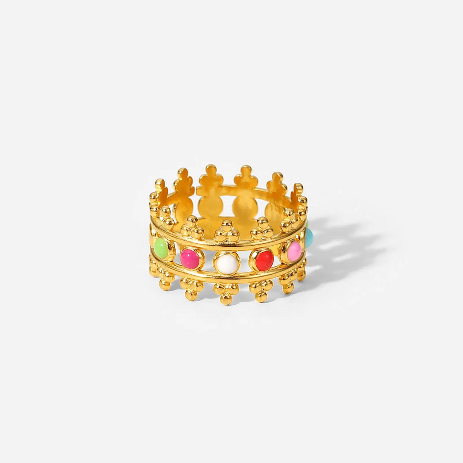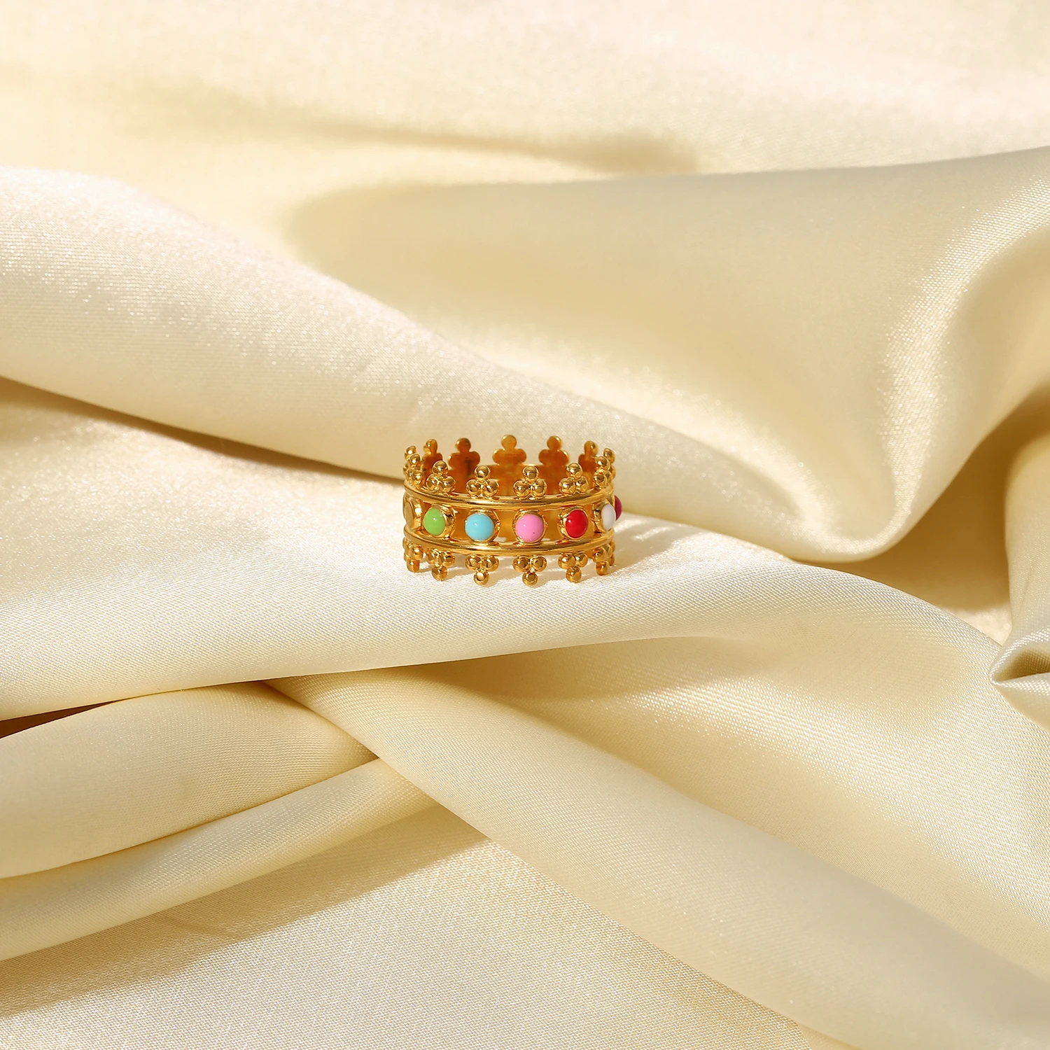 Недорогие Регулируемые кольца из нержавеющей стали, 18-каратное золото, капающая эмалью, ювелирные изделия, водонепроницаемые широкие кольца, подарок для женщин и девушек