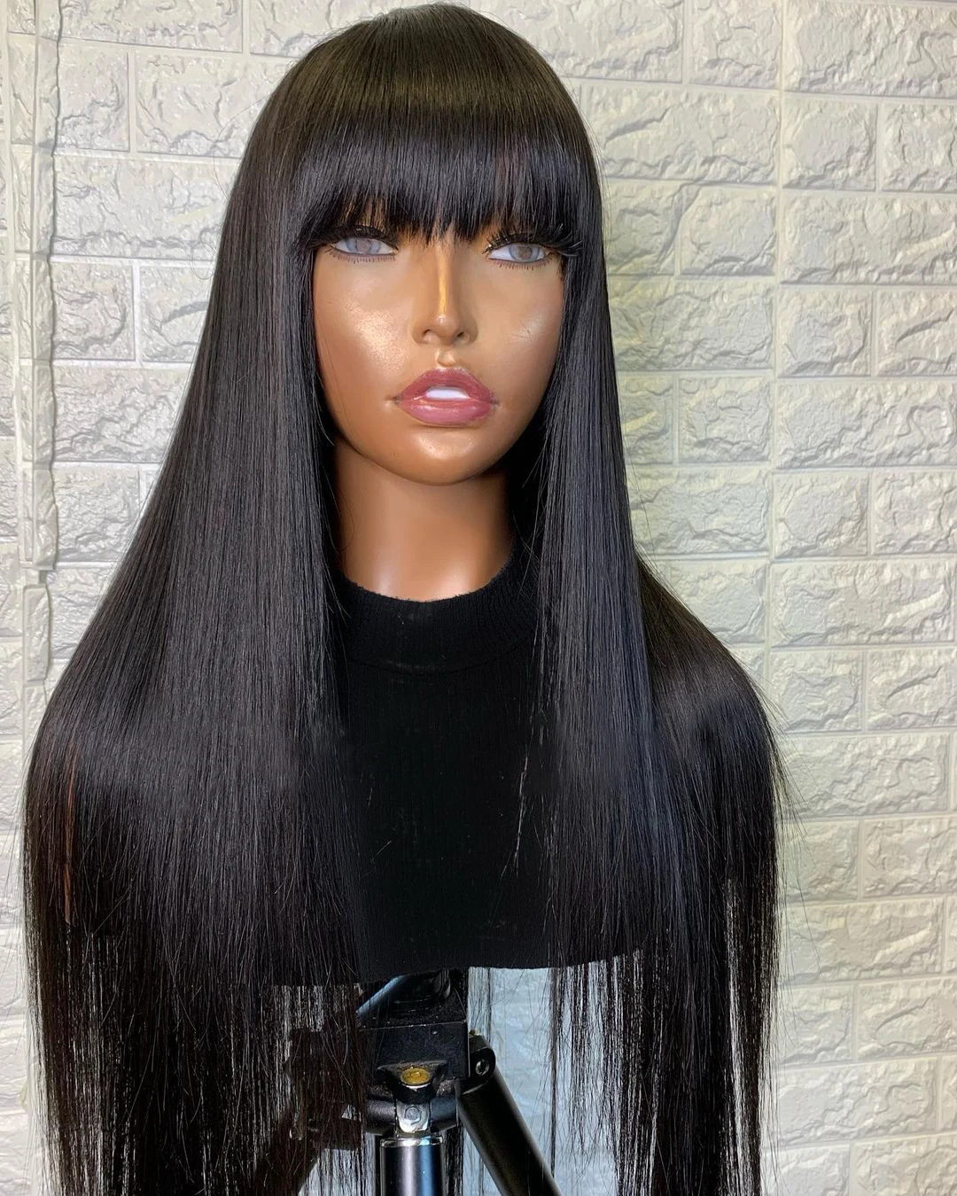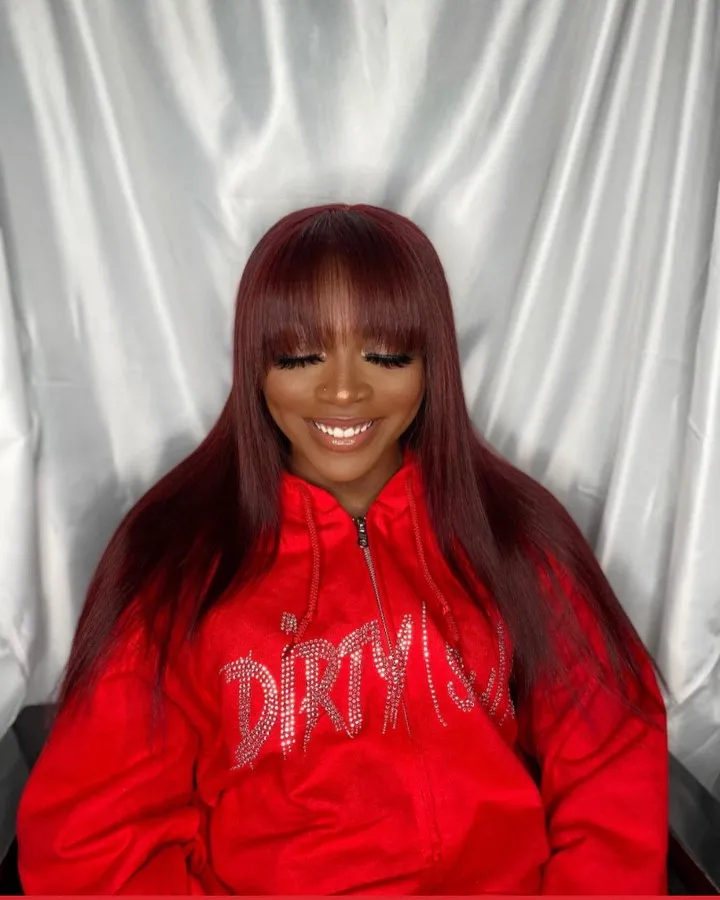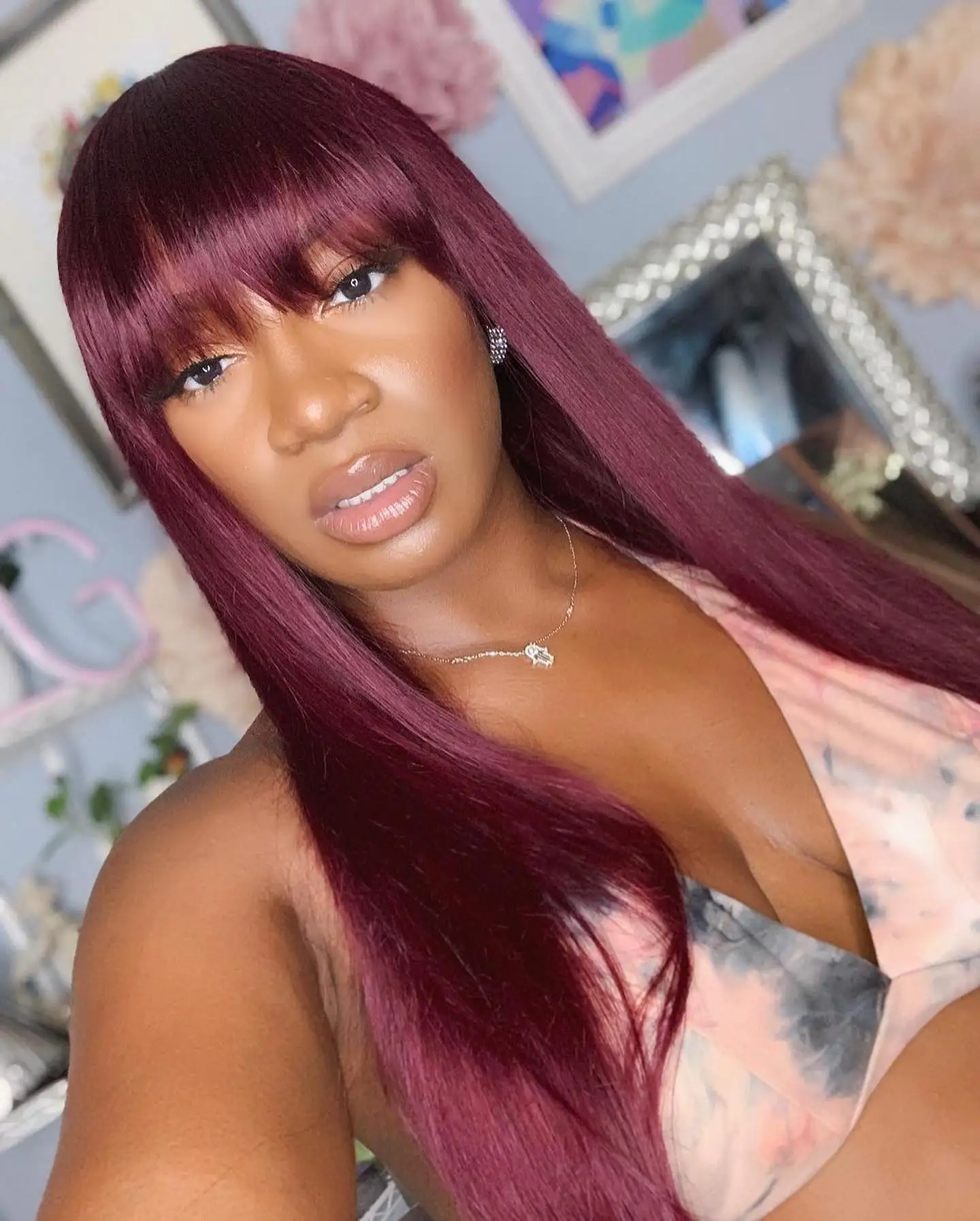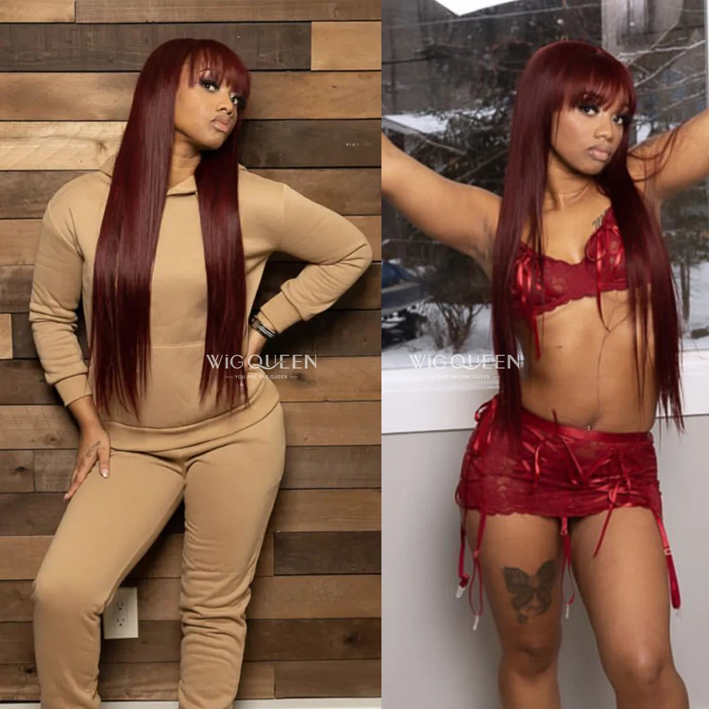 99J красный бордовый парик из человеческих волос с челкой для женщин, прямой парик Remy Bang, человеческие волосы, полностью машинное изготовление, цветные человеческие волосы, парики