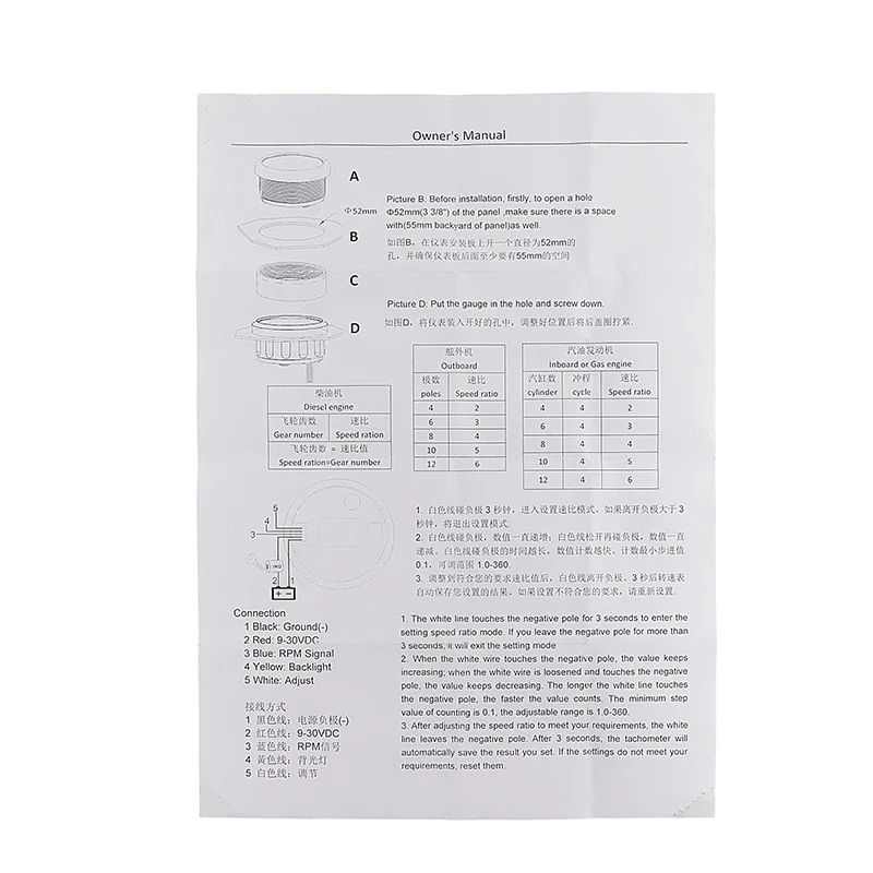 Диапазон индикации: 0-3000 0-4000 0-6000 0-7000 0-8000 об/мин