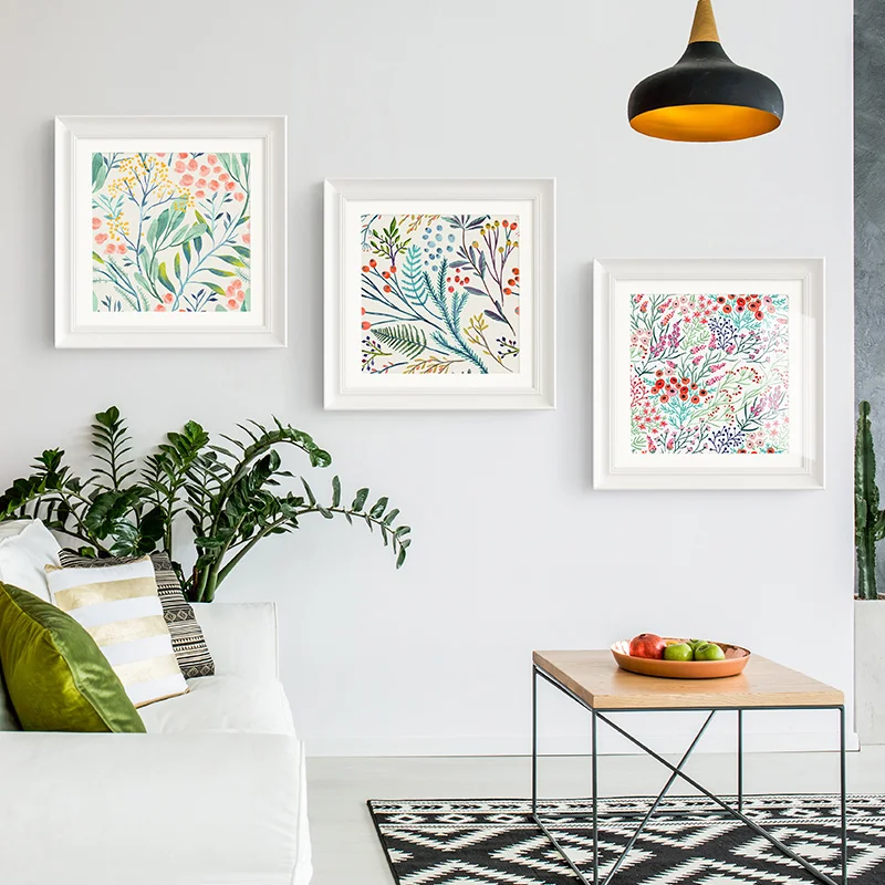 Постер на холсте с изображением акварельных цветов, букетиков, карт...
