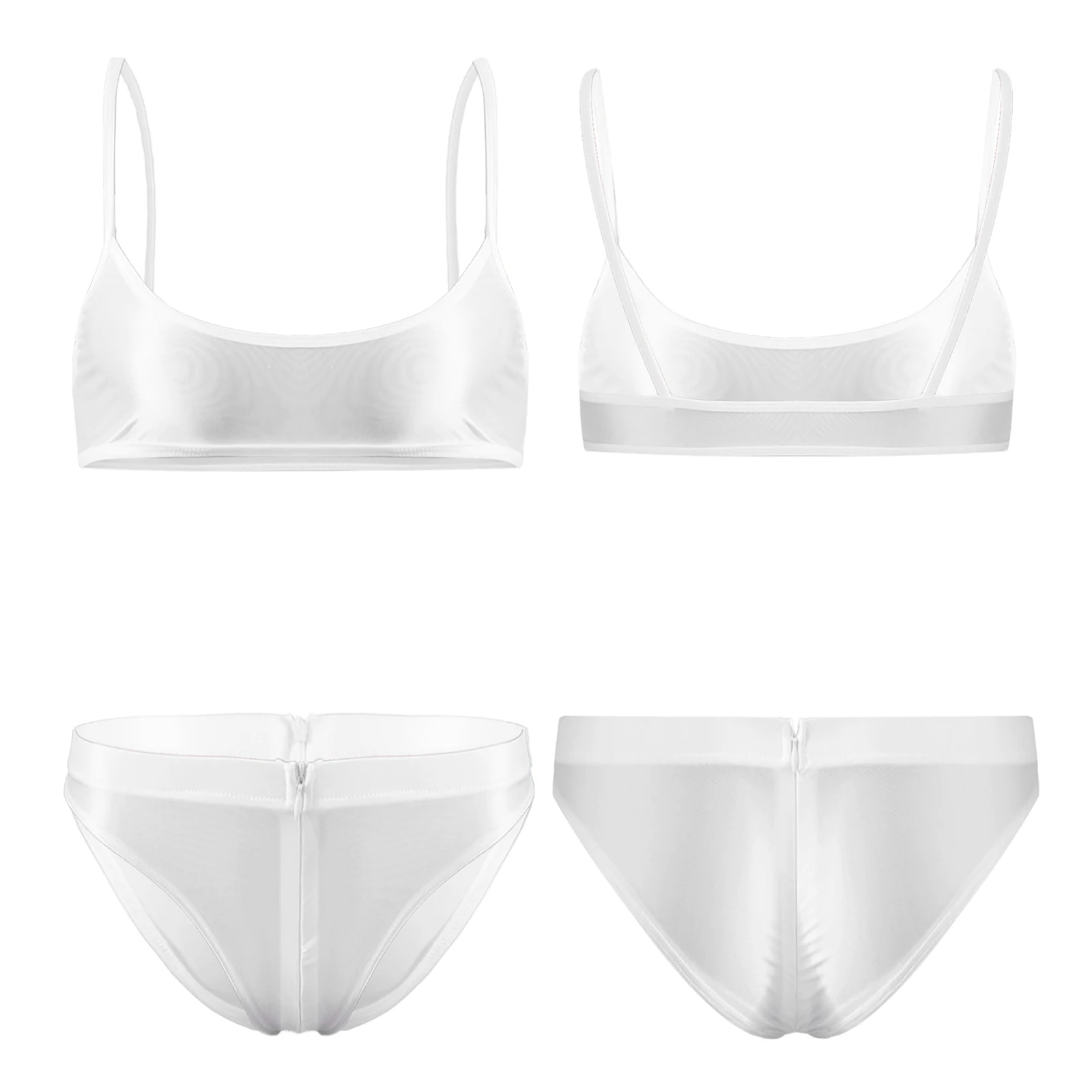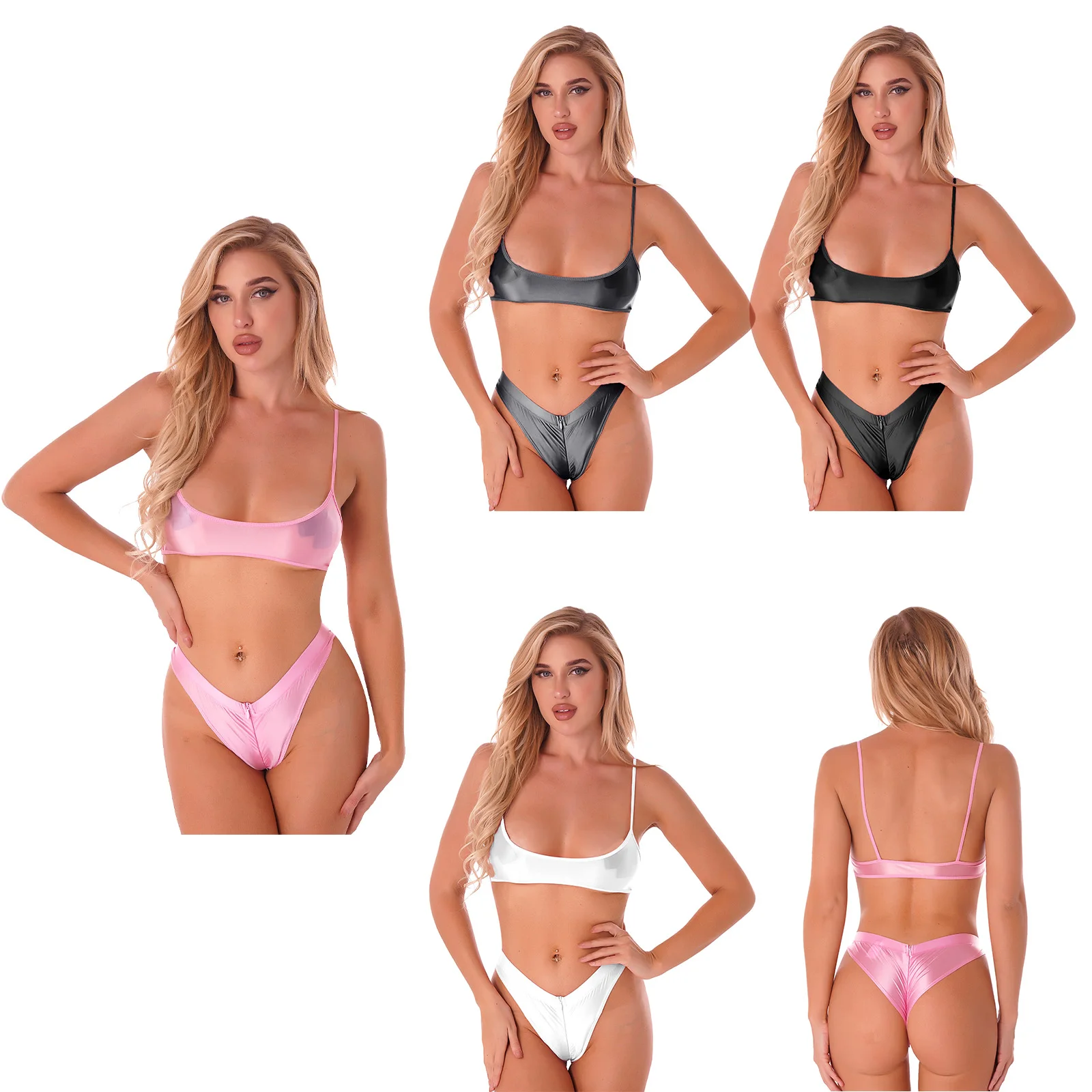 Женский сексуальный блестящий костюм бикини, блестящие бюстгальтеры, топы и трусики на молнии с промежностью, клубный костюм для вечевечерние, танцевальный купальник