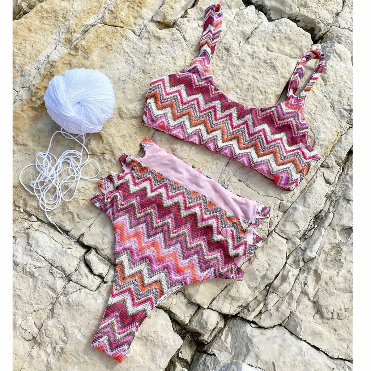 Соблазнительное бикини 2022, комплект бикини в рубчик с волнистыми ...