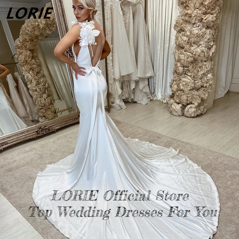 LORIE сексуальные блестящие свадебные платья с 3D цветами в богемно...