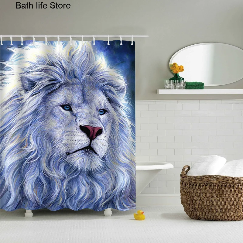 Занавеска для душа с принтом синего льва, водонепроницаемая шторка из полиэстера, в ванную комнату, 10 крючков