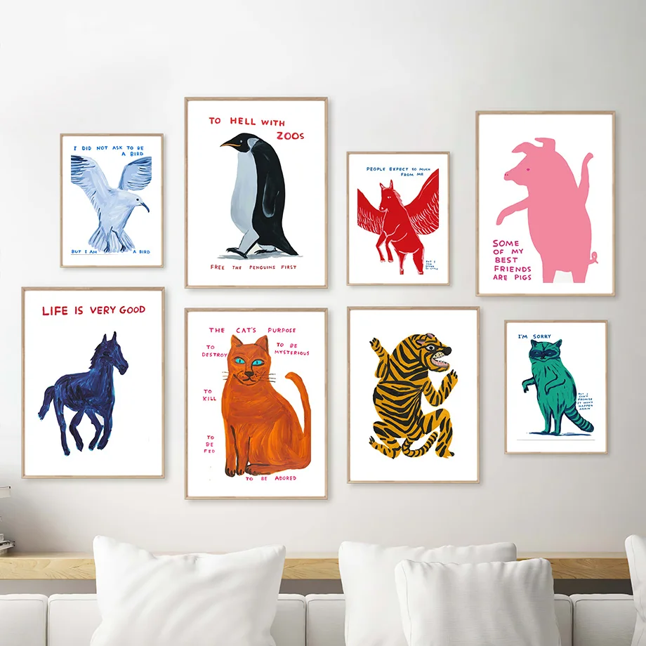 Картина на холсте с изображением тигра, пингвина, Кита, птицы, лошади, собаки