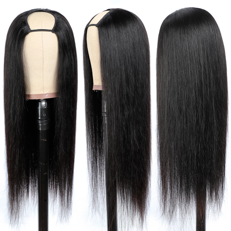 Прямые u-образные парики из человеческих волос, парики для черных женщин, бразильские прямые дешевые человеческие волосы, парики без клея, u-образные парики, плотность 150%