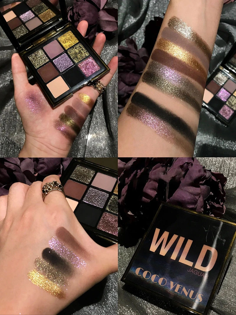 Серия Дикие животные, 9 цветов, тени для век, черная Дымчатая палит...