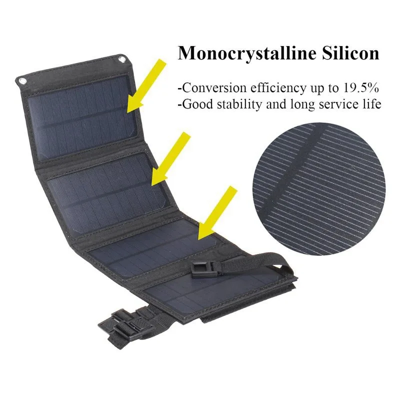 -При выключении солнечное зарядное устройство примерно соответствует размеру кошелька. Он имеет ремни с пряжкой, чтобы вы могли повесить его на рюкзак. Этот портативный дизайн идеально подходит для активного отдыха, например, пеших прогулок или езды на велосипеде.