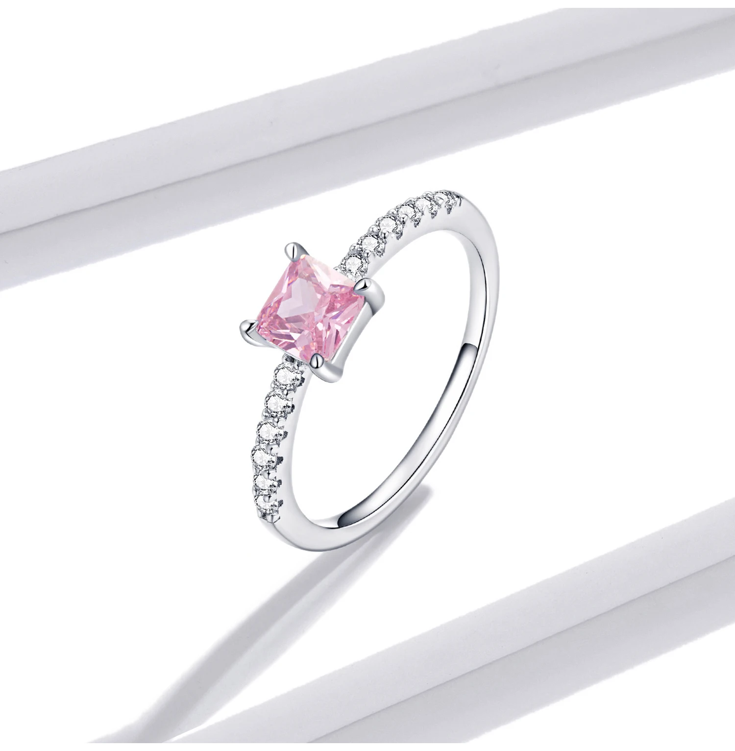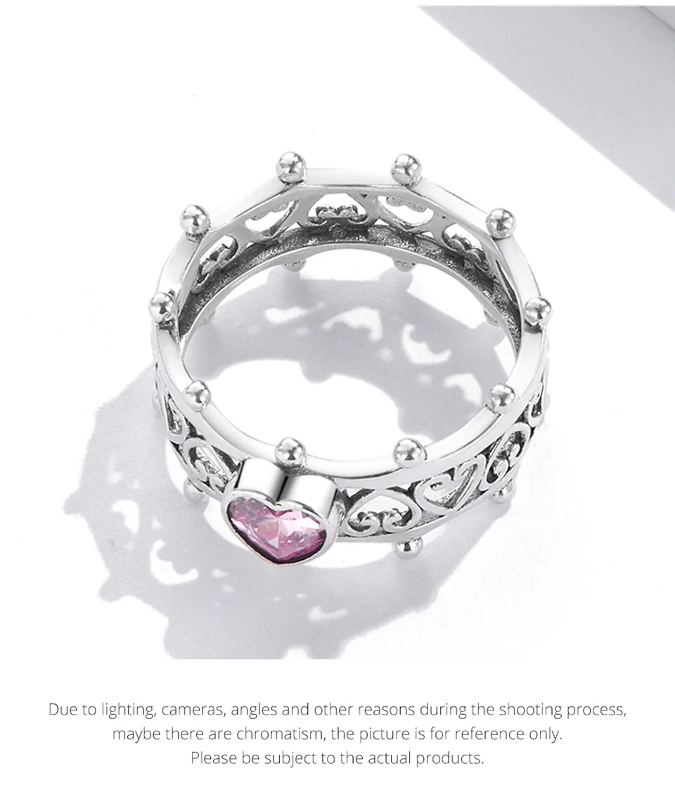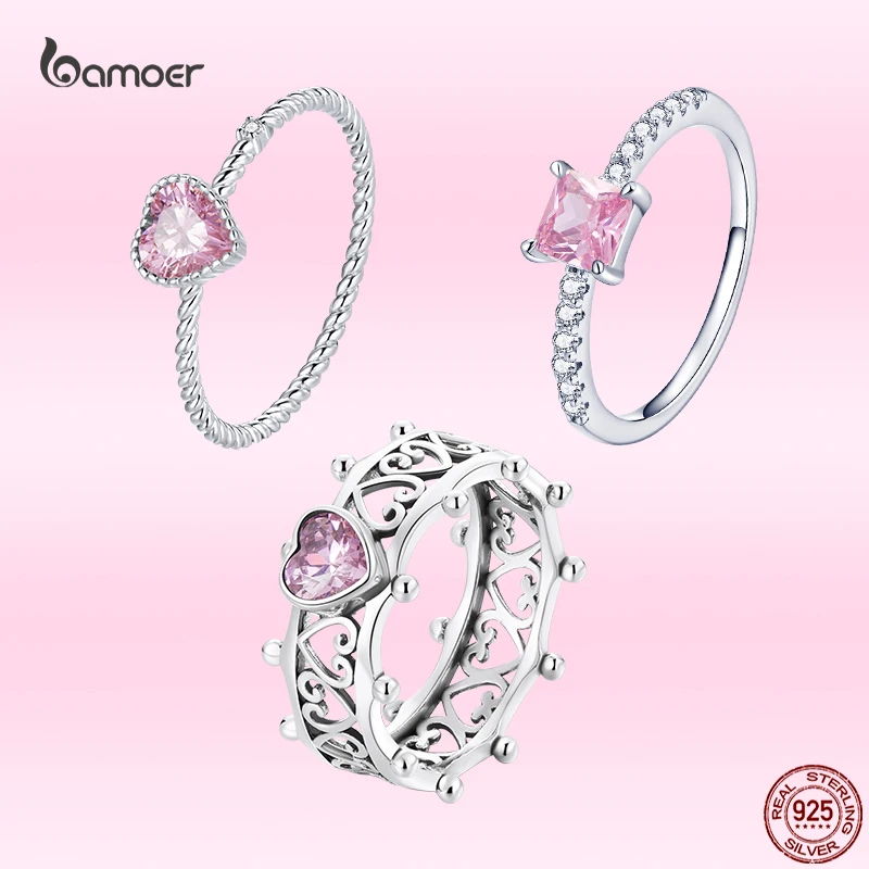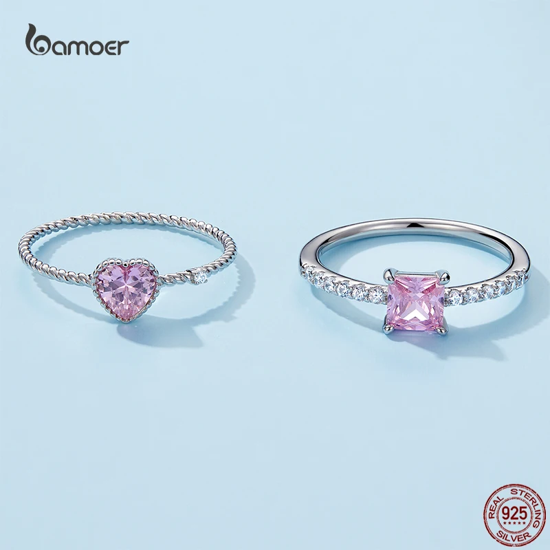 Bamoer 2021 модное розовое сердце CZ Кольцо для женщин 100% Серебро...