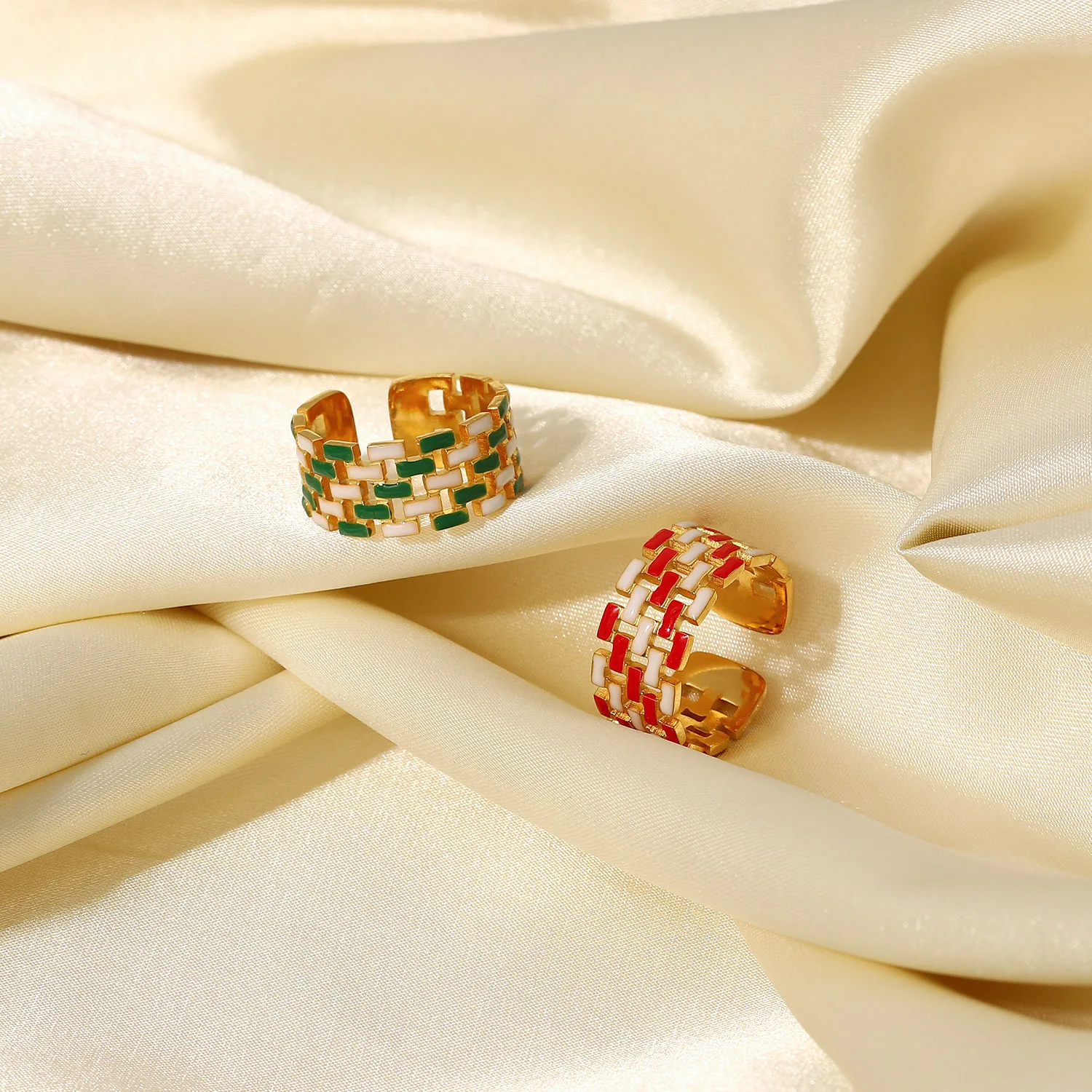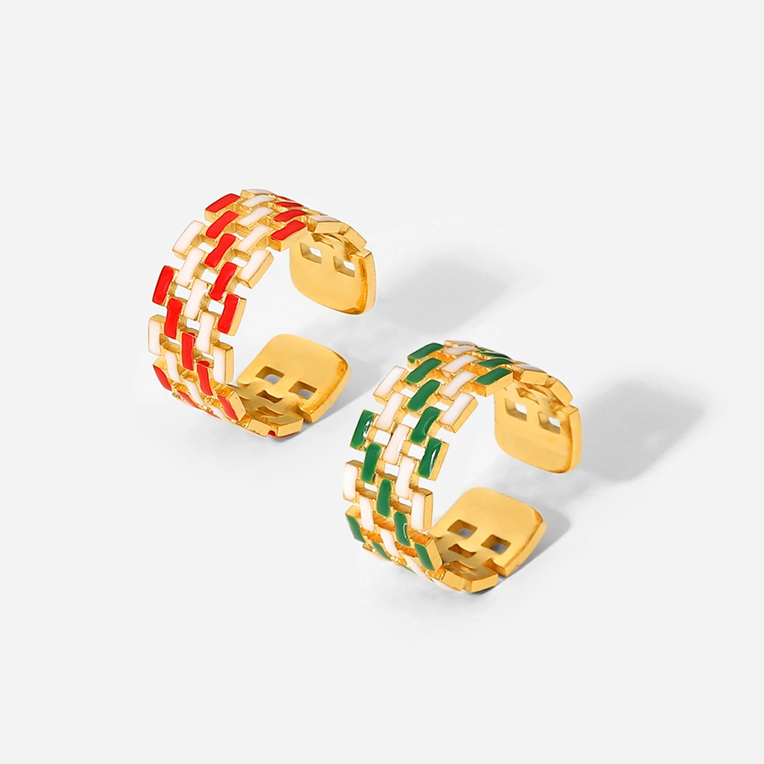 Женские кольца из нержавеющей стали с широким диапазоном, открытые, красные, зеленые, белые, с прорезями в виде капли масла, плетеные цепочки на молнии, кольца, ювелирные изделия из 18-каратного золота