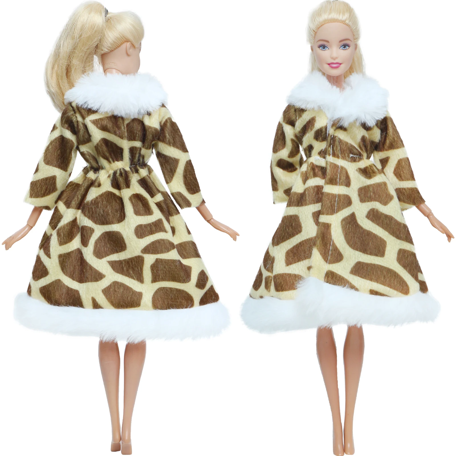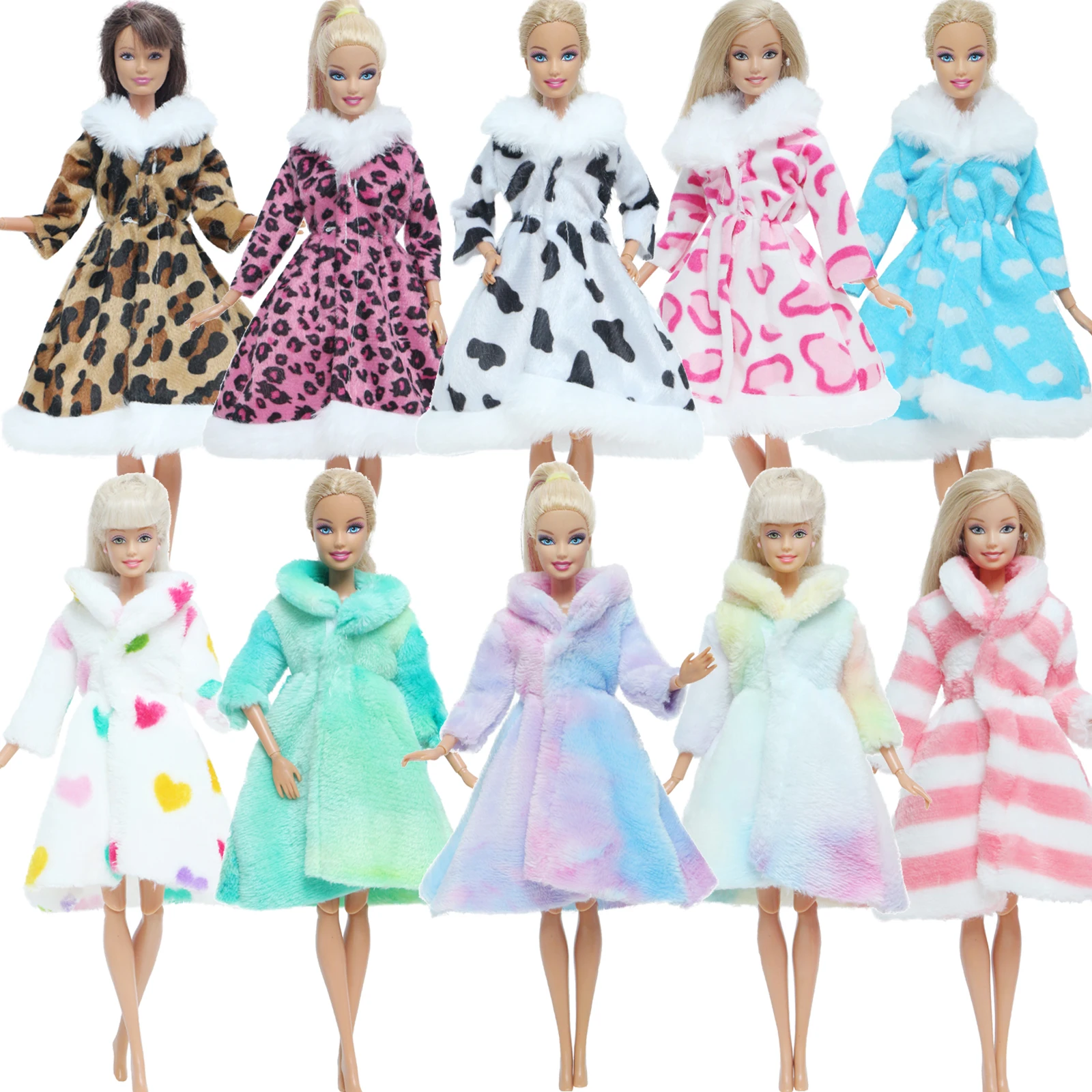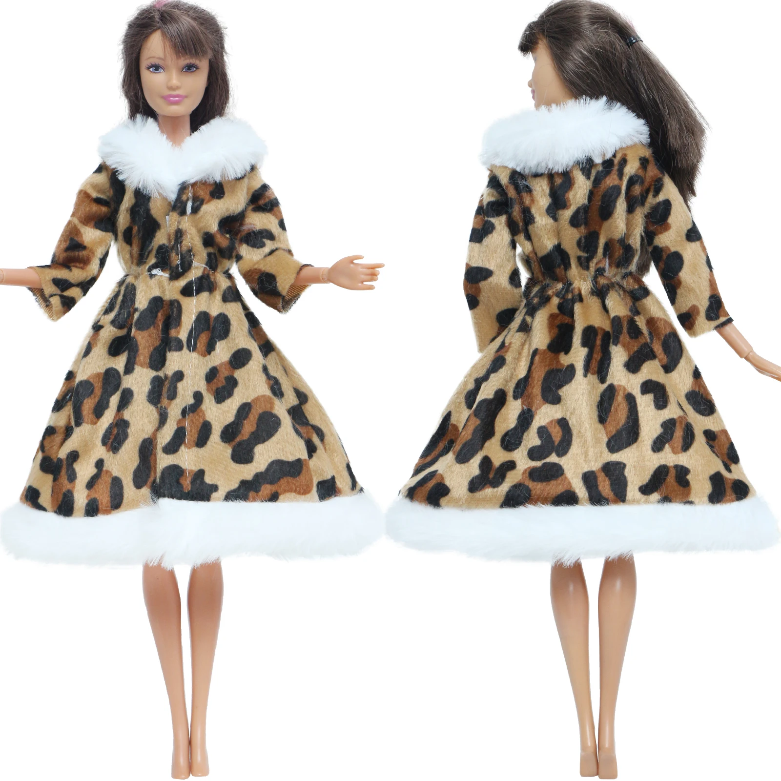 Разноцветное пальто BJDBUS, мягкое меховое платье с леопардовым принтом, топы, куртка, наряд, Зимняя Теплая Одежда для куклы Барби, аксессуары для детской игрушки