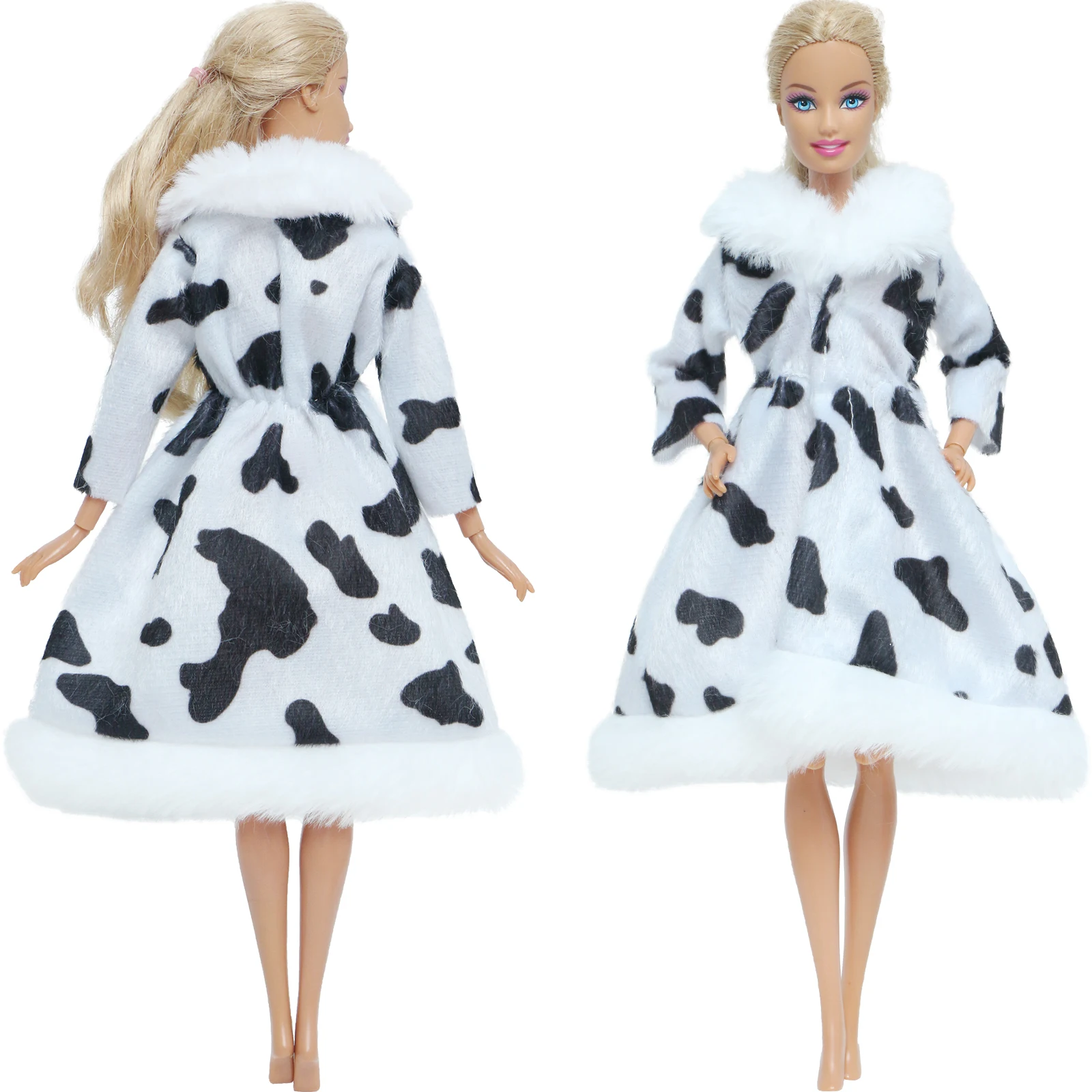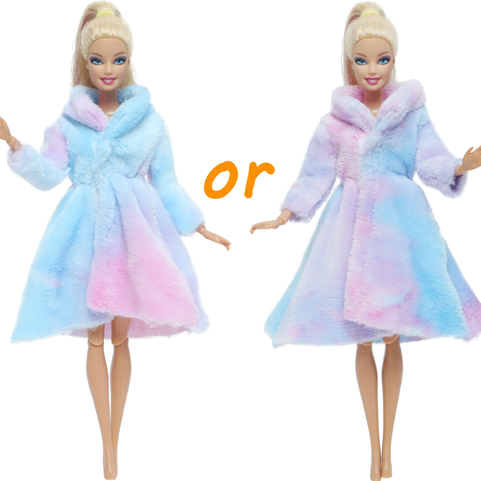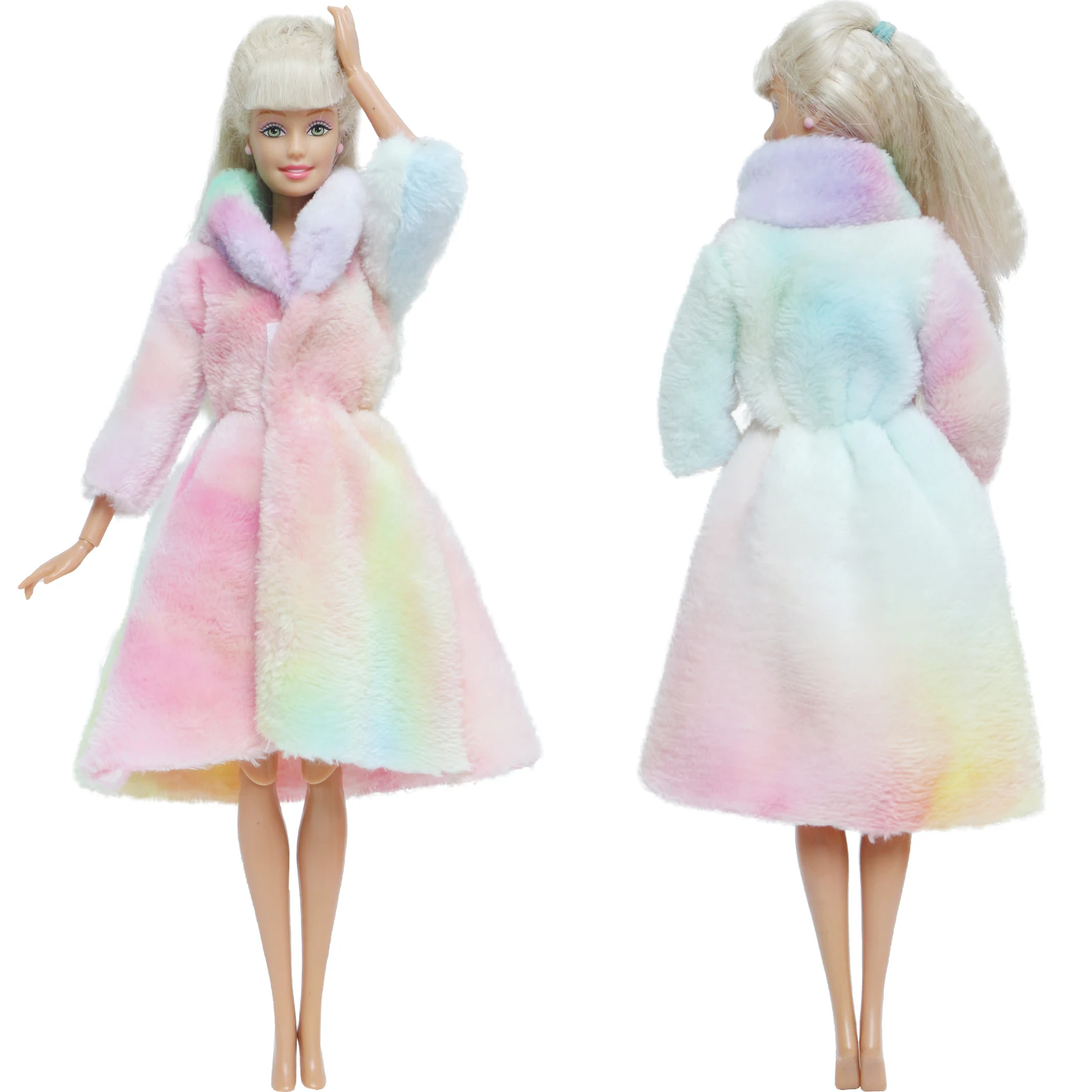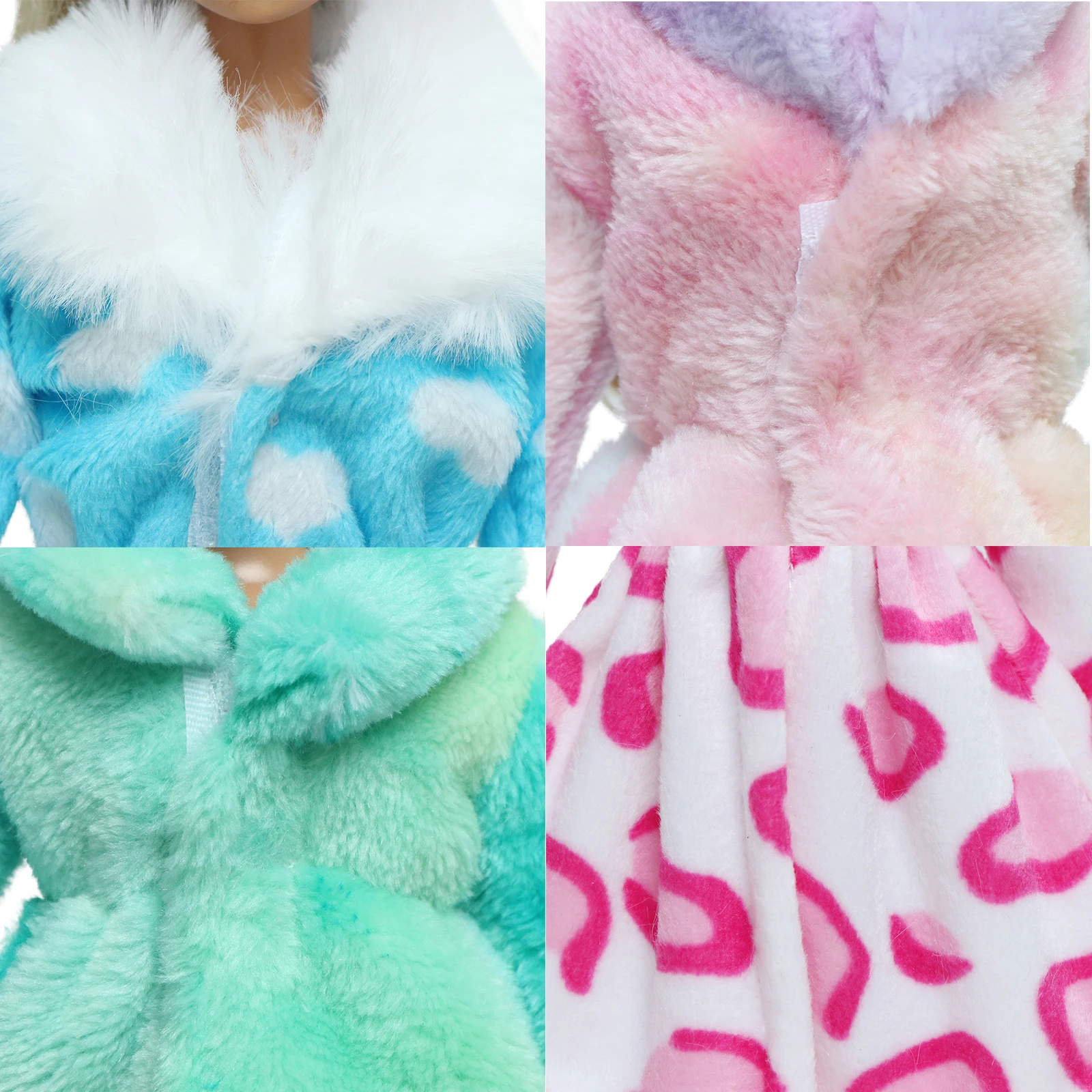 Разноцветное пальто BJDBUS, мягкое меховое платье с леопардовым принтом, топы, куртка, наряд, Зимняя Теплая Одежда для куклы Барби, аксессуары для детской игрушки