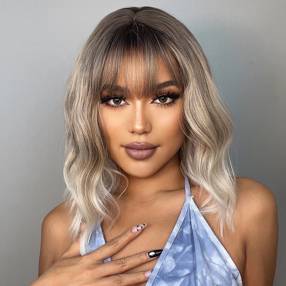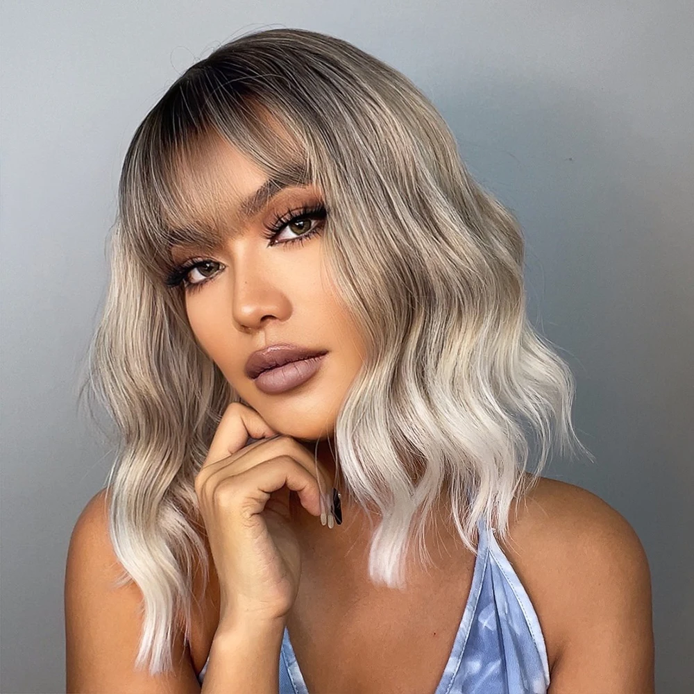 GEMMA боб парики пепепельно-серый Платиновый синтетический парик с челкой для черных женщин короткие волнистые натуральные повседневные термостойкие косплей волосы