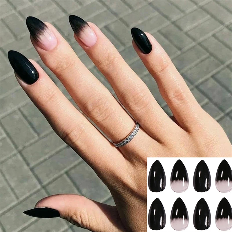 Накладные ногти черного и белого цвета с удлинителем ногтей накладн...