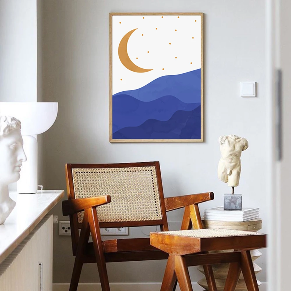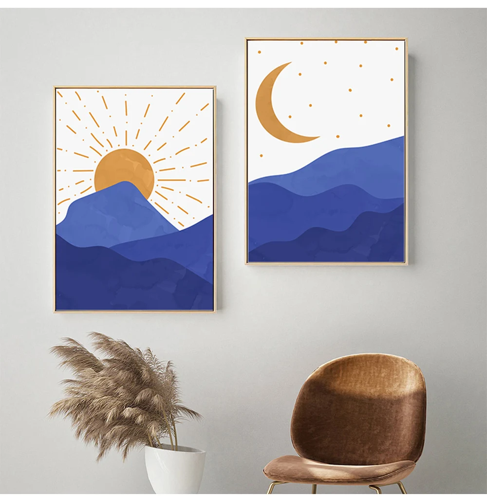 Бохо пустыня стена искусство Солнце Луна Пейзаж холст живопись кори...