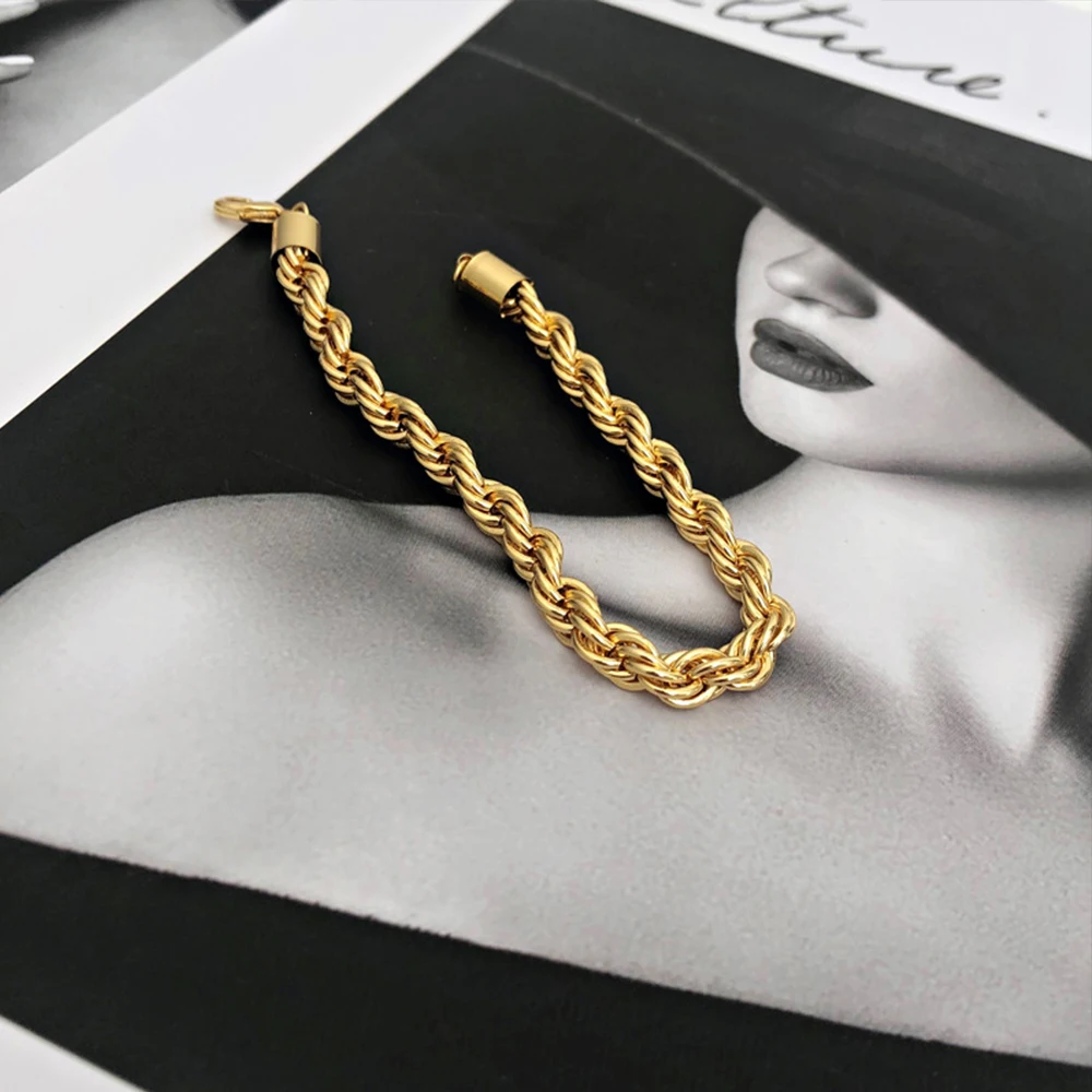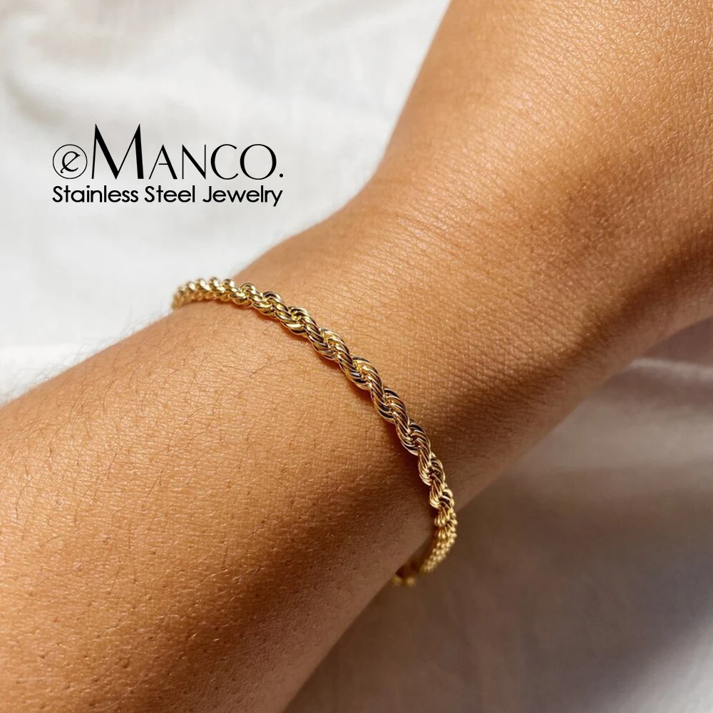 Женский плетеный браслет eManco, золотистый браслет из нержавеющей стали в стиле хип-хоп, панк, 4 мм, ожерелье золотистого цвета, модные ювелирные украшения