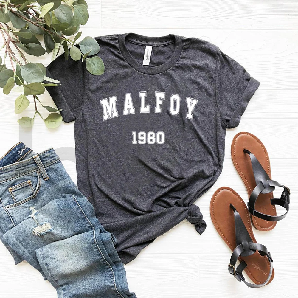Malfoy1980 футболка, волшебный фильм, вдохновленный Волшебный мир, винтажные Волшебные школьные футболки, женские рубашки Draco Malfoy