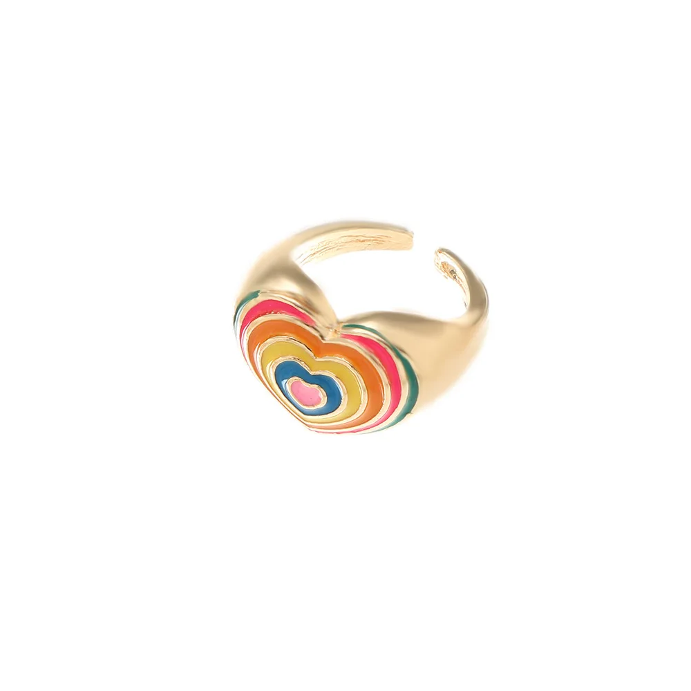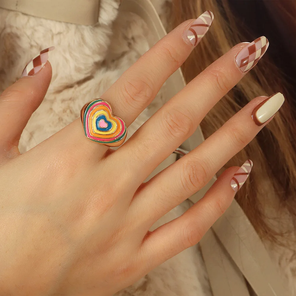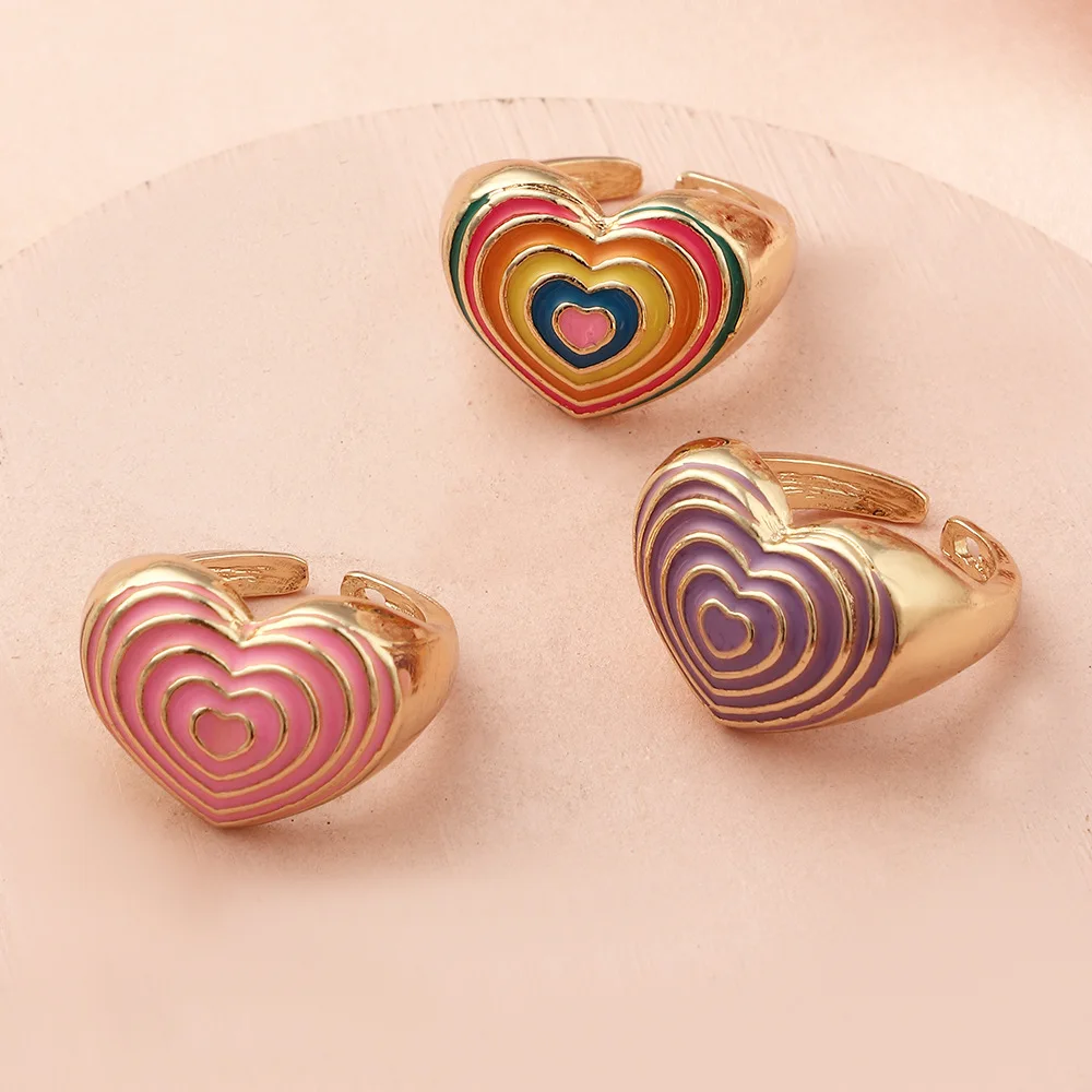 Винтажные милые эмалированные радужные персиковые кольца в форме сердца для женщин для подруги помолвки вечеривечерние модные ювелирные изделия на палец Harajuku кольцо для любви