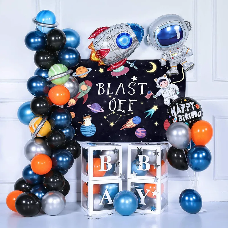 110pcs Universe Outer Space Astronaut Rocket Galaxy Theme Latex Foil Balloons Garland Arch Kit Boy Birthday Party Decorations