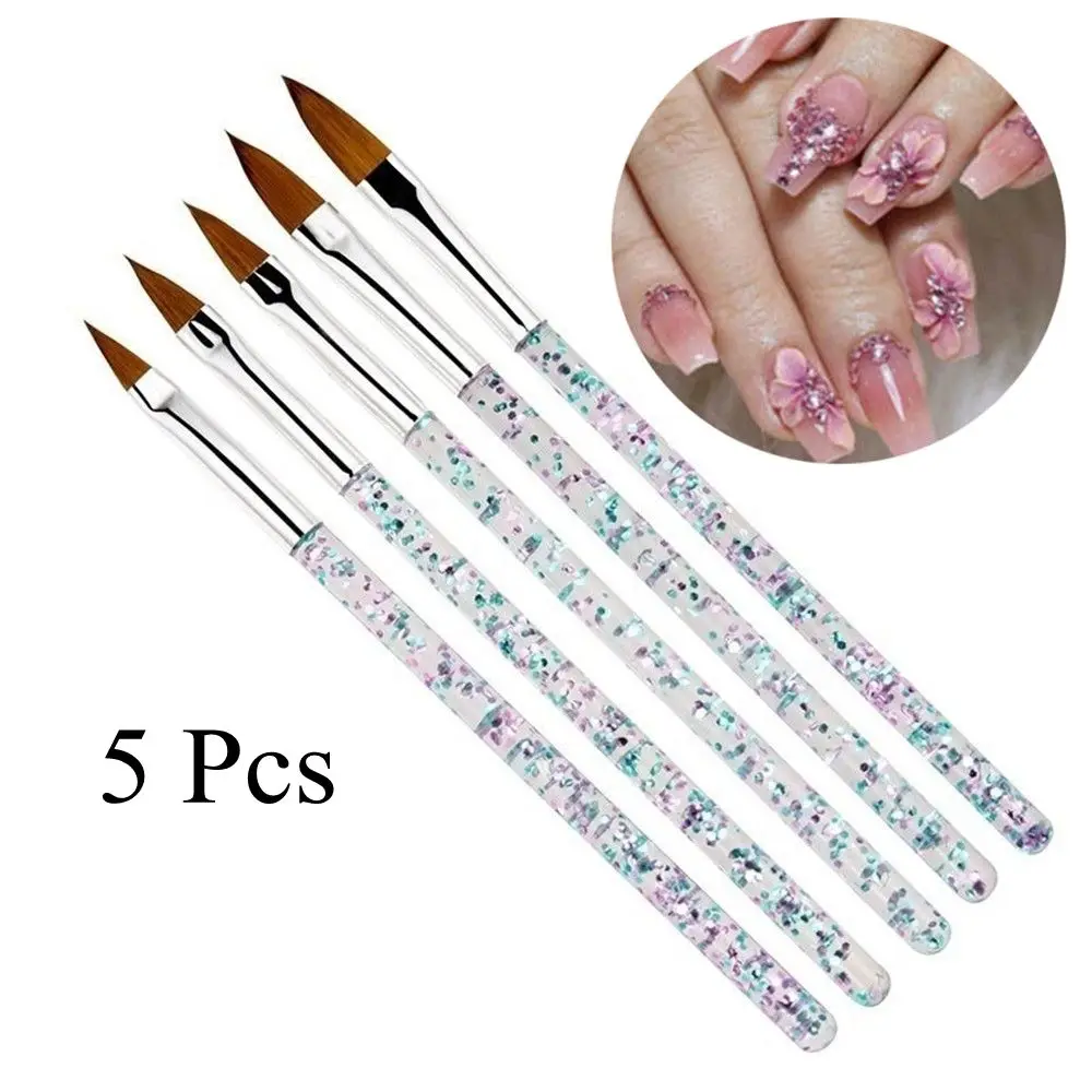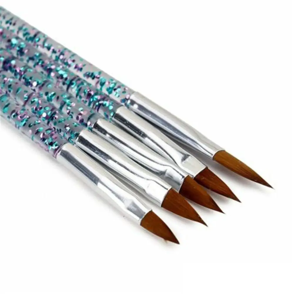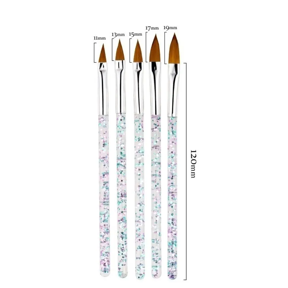 Набор кистей для дизайна ногтей, 5 шт., с кристальной ручкой, инструменты для наращивания ногтей