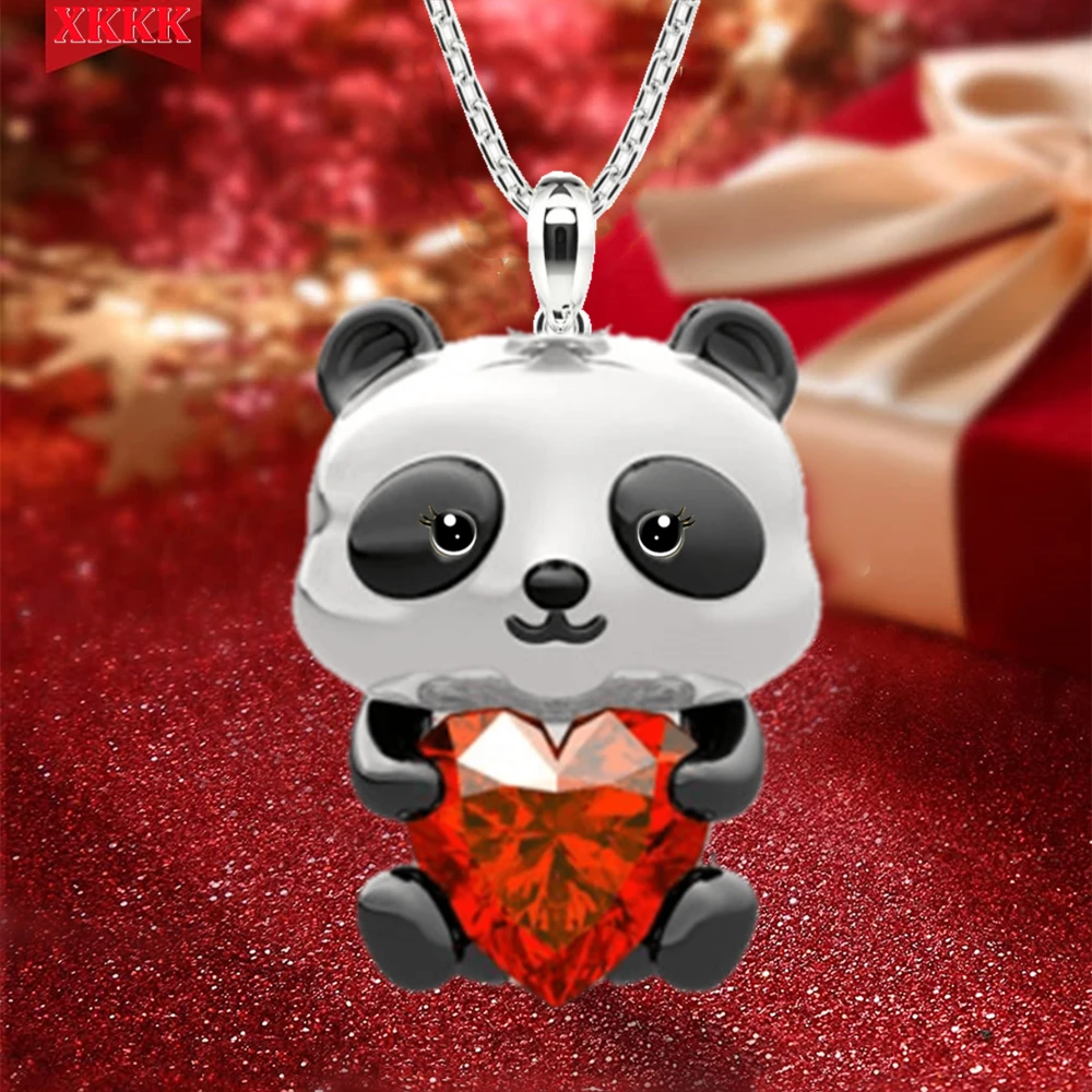 бижутерия для женщин 2022 Модное ожерелье с пандой и красным кристаллом для женщин натуральное сияющее сердце кристалл медведь животное кулон подарок на день Святого Валентина бижутерия люкс качества
